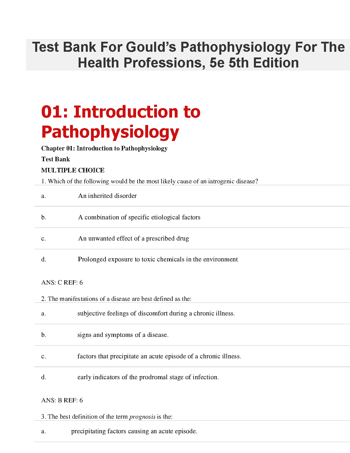 Master your course with the official Test Bank for Gould's Pathophysiology for the Health Professions, 5th Edition, by Karin C. VanMeter and Robert J. Hubert. This comprehensive resource provides a complete collection of exam questions and answers covering every chapter of the textbook. It's the perfect study companion to help you test your knowledge, prepare effectively for exams, and achieve top grades in your health professions program.