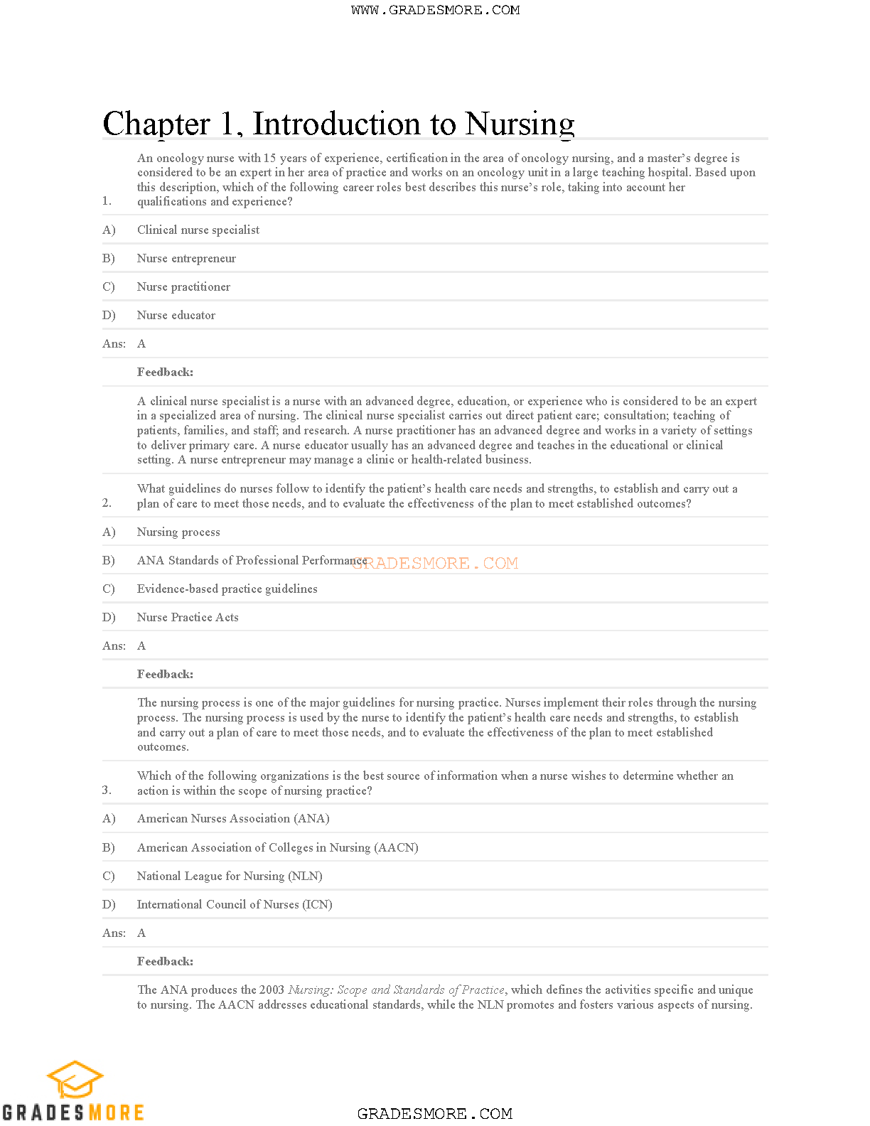 Gain a competitive edge with the official Test Bank for Chapter 1, 'Introduction to Nursing,' from the 11th Edition of Fundamentals of Nursing by Potter, Perry, Stockert, and Hall. This indispensable resource is packed with multiple-choice questions, each accompanied by a correct answer and a detailed rationale to deepen your understanding. It's the perfect tool for nursing students to self-assess, master core concepts, and confidently prepare for course exams and the NCLEX.