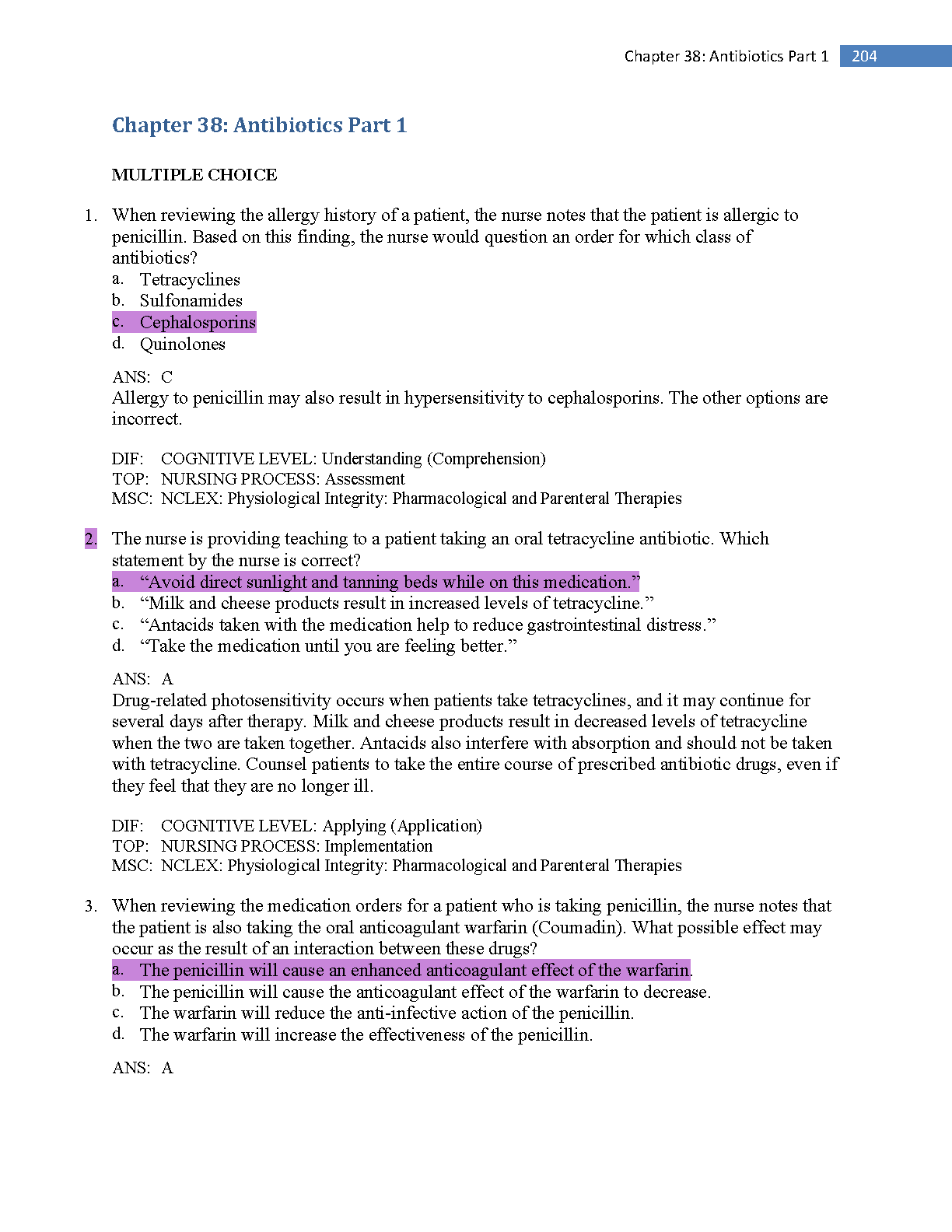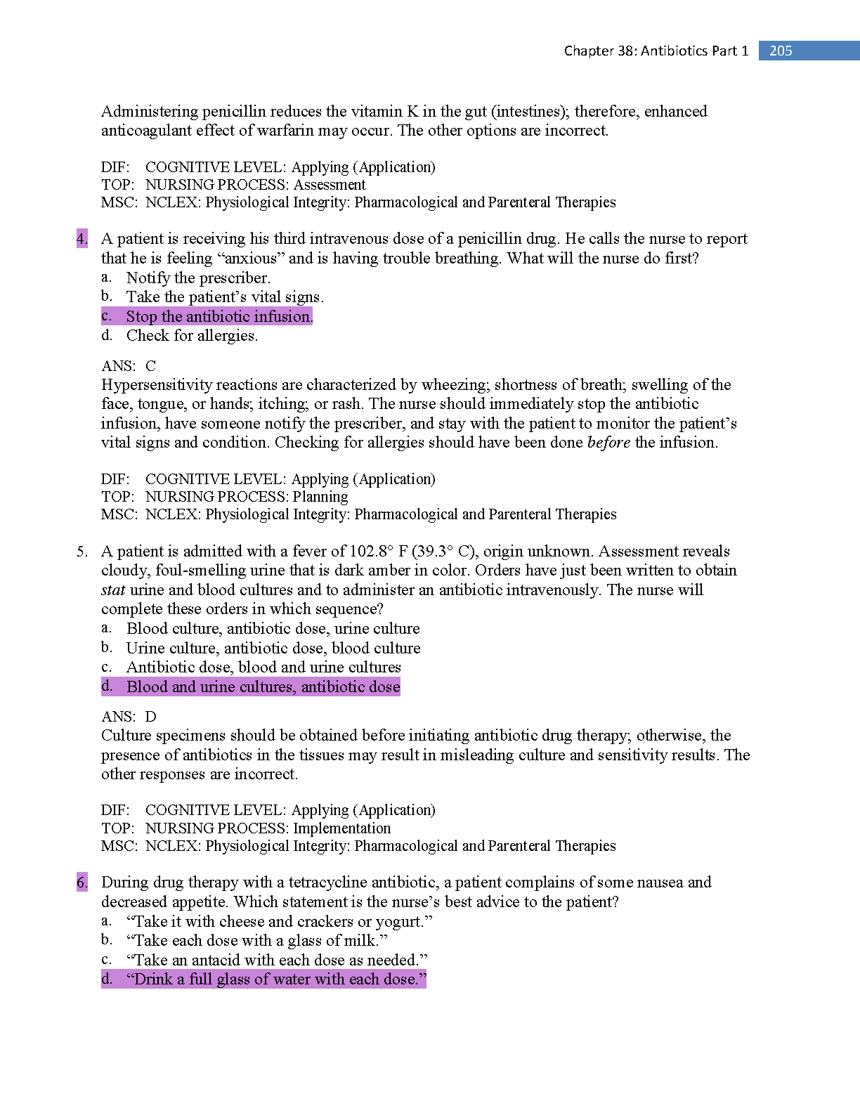 Gain a critical edge in your nursing studies with the official Test Bank for Chapter 38: Antibiotics Part 1, from 'Pharmacology and the Nursing Process, 10th Edition' by McCuistion, Yeager, Winton, and DiMaggio. This indispensable resource provides a full collection of NCLEX-style multiple-choice questions complete with correct answers and detailed rationales. Dive deep into essential topics such as antibiotic classifications, patient safety, drug interactions, and crucial nursing considerations. Perfect for nursing students aiming to excel in their pharmacology courses and conquer the NCLEX exam.