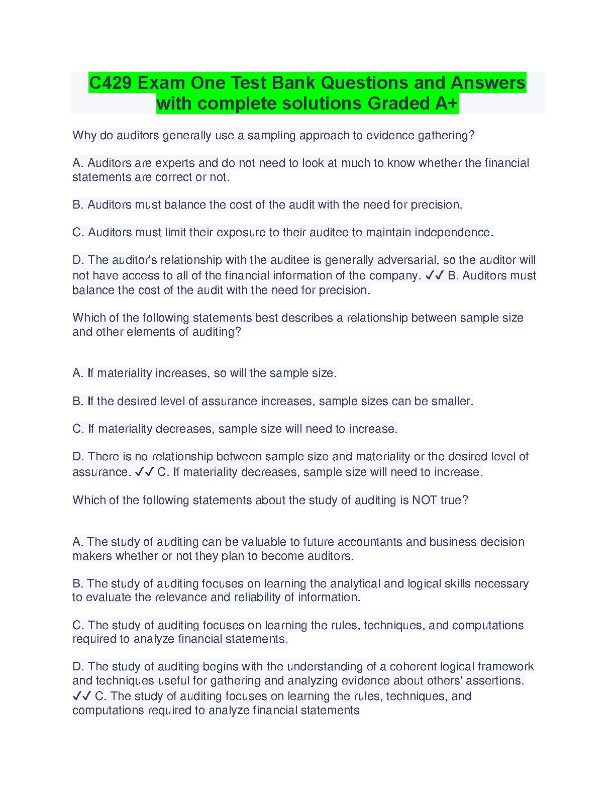 C429 Exam One Test Bank Questions and Answers with complete solutions Graded A+ LATEST SOLUTION. DOWNLOAD on www.hackedexams.com INSTANTLY.