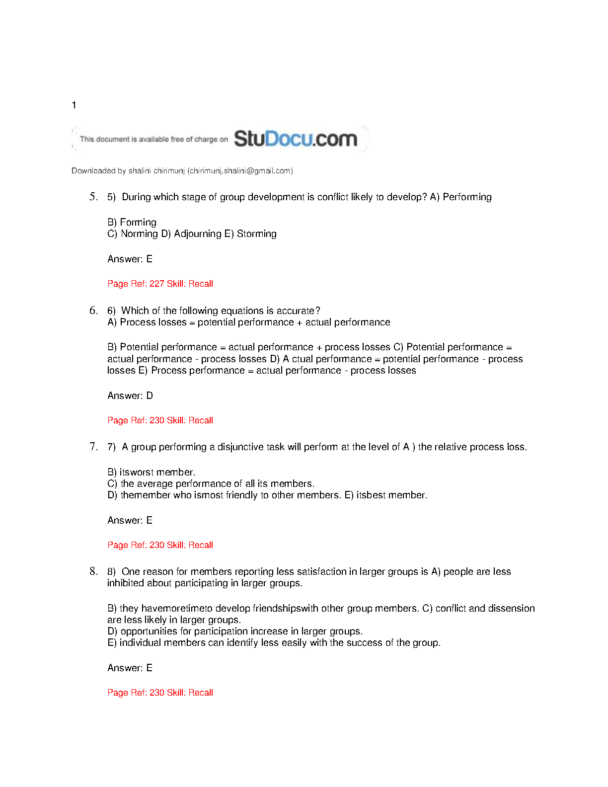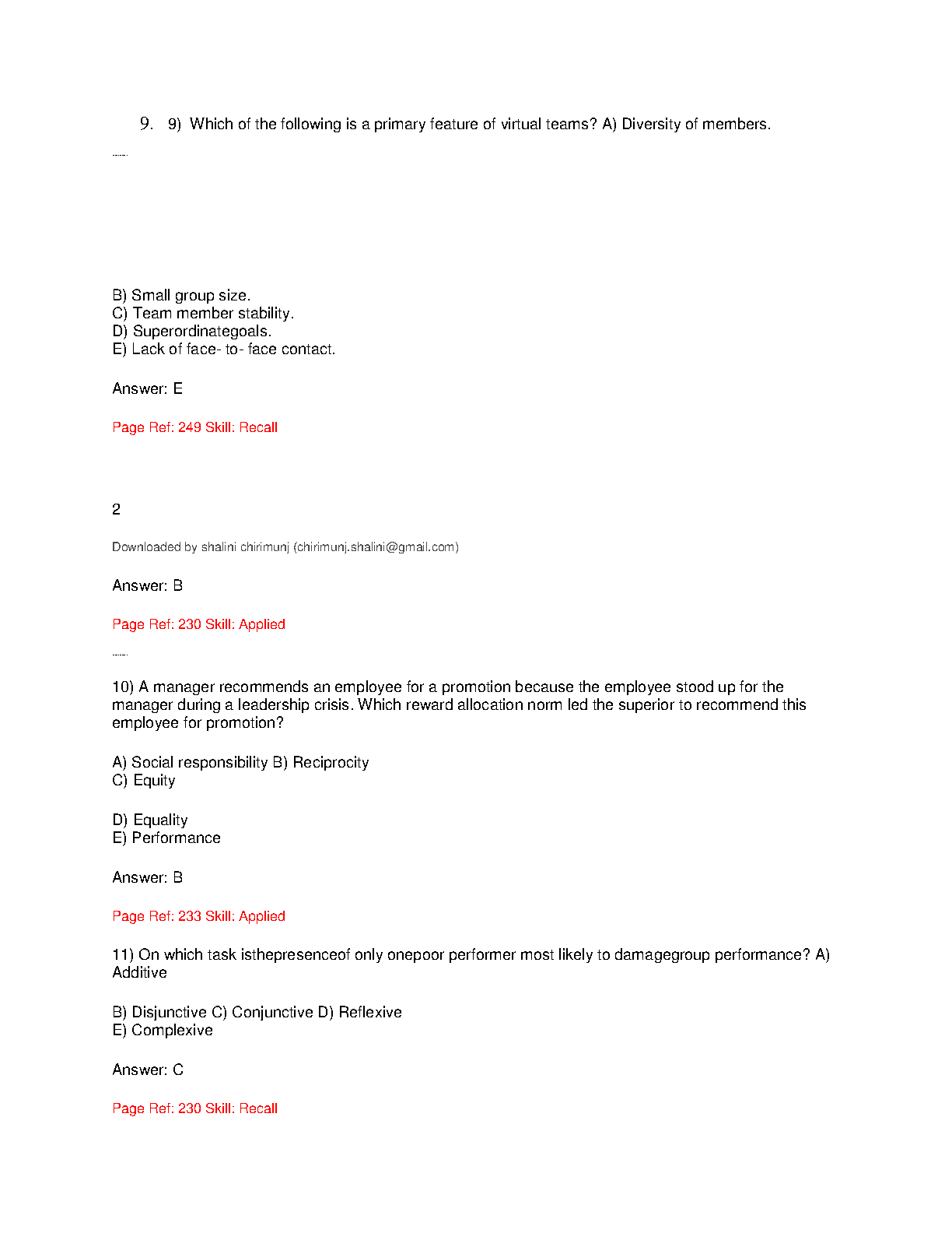 Test Bank for Organizational Behaviour: Understanding and Managing Life at Work, 11th Canadian Edition by Gary Johns and Alan M. Saks - Chapter 7: Groups and Teamwork