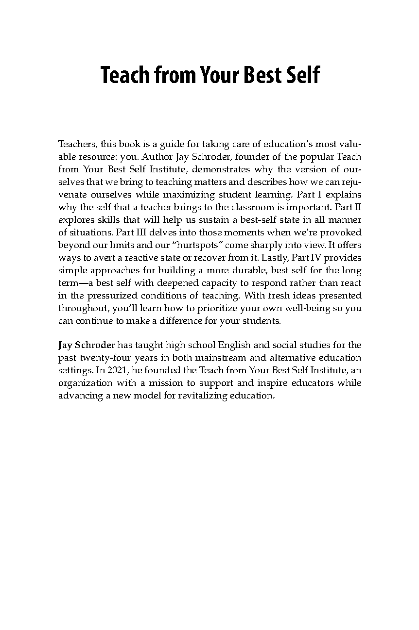 Teach From Your Best Self, 1st Edition by Jay Schroder | 2025/2026 Teacher's Guide to Thrive in the Classroom & Ensure Student Success First Time