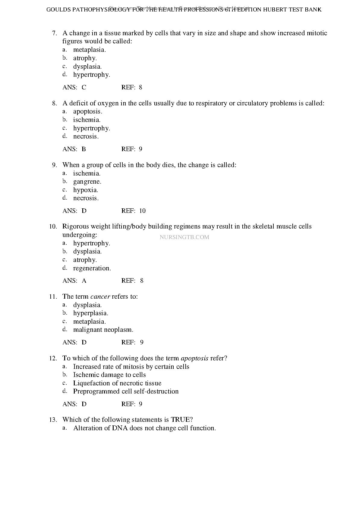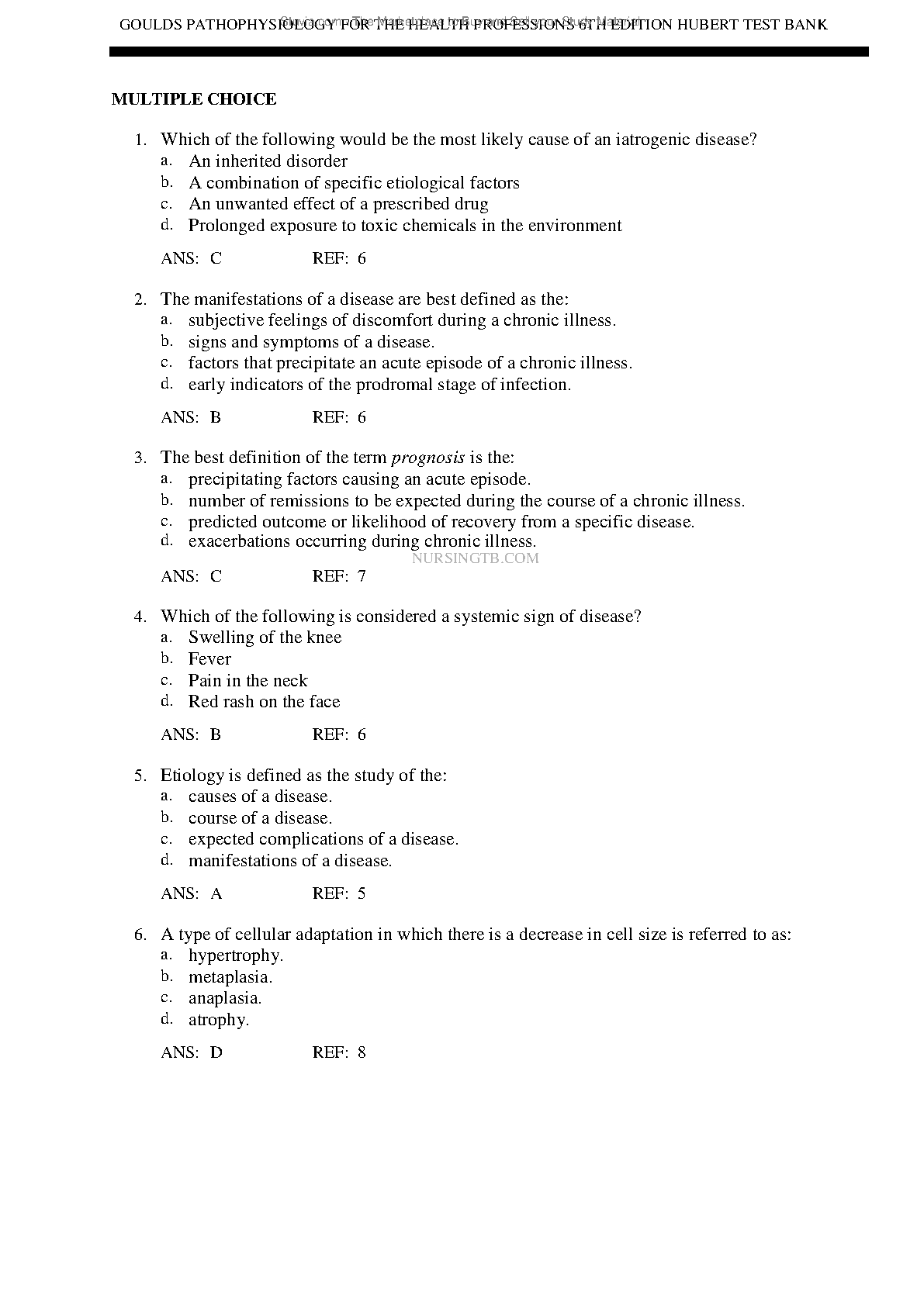 Test Bank for Gould's Pathophysiology for the Health Professions, 6th Edition by Robert J. Hubert and Karin C. VanMeter