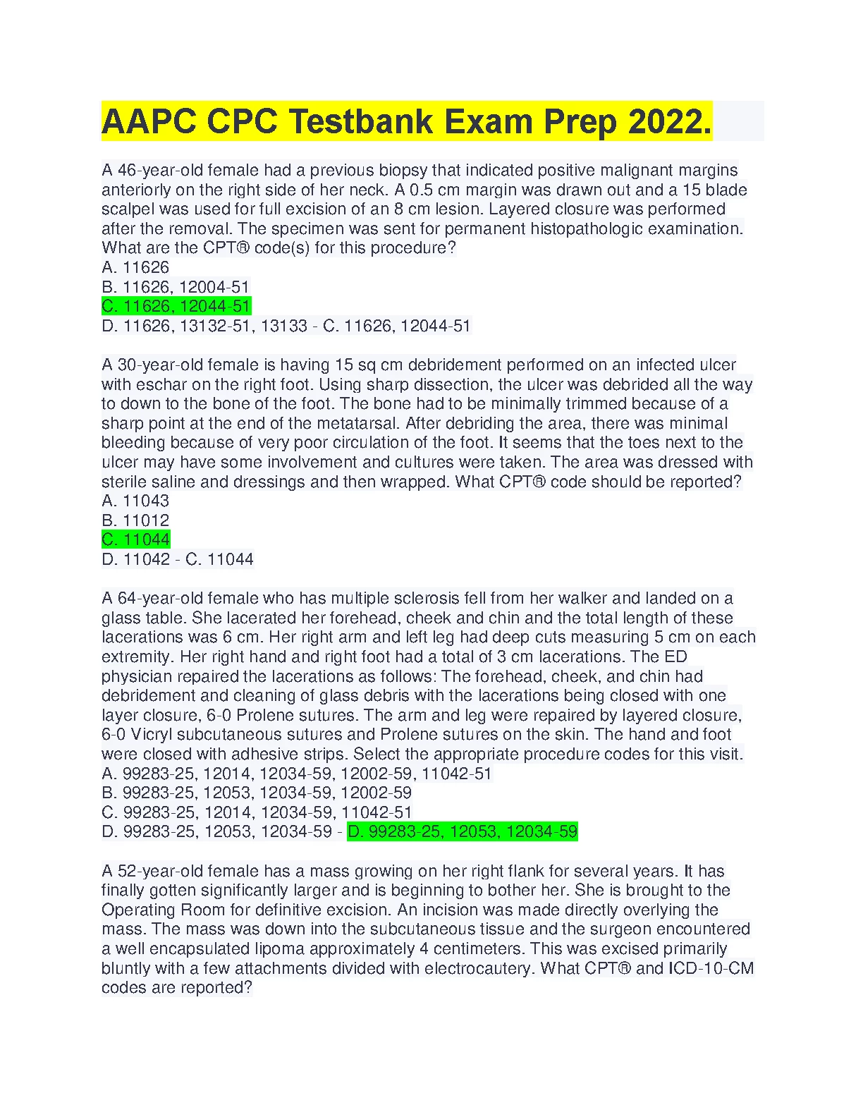 AAPC CPC Test Bank Exam Prep 2022/2023 COMPLETE AND NEW SOLUTION