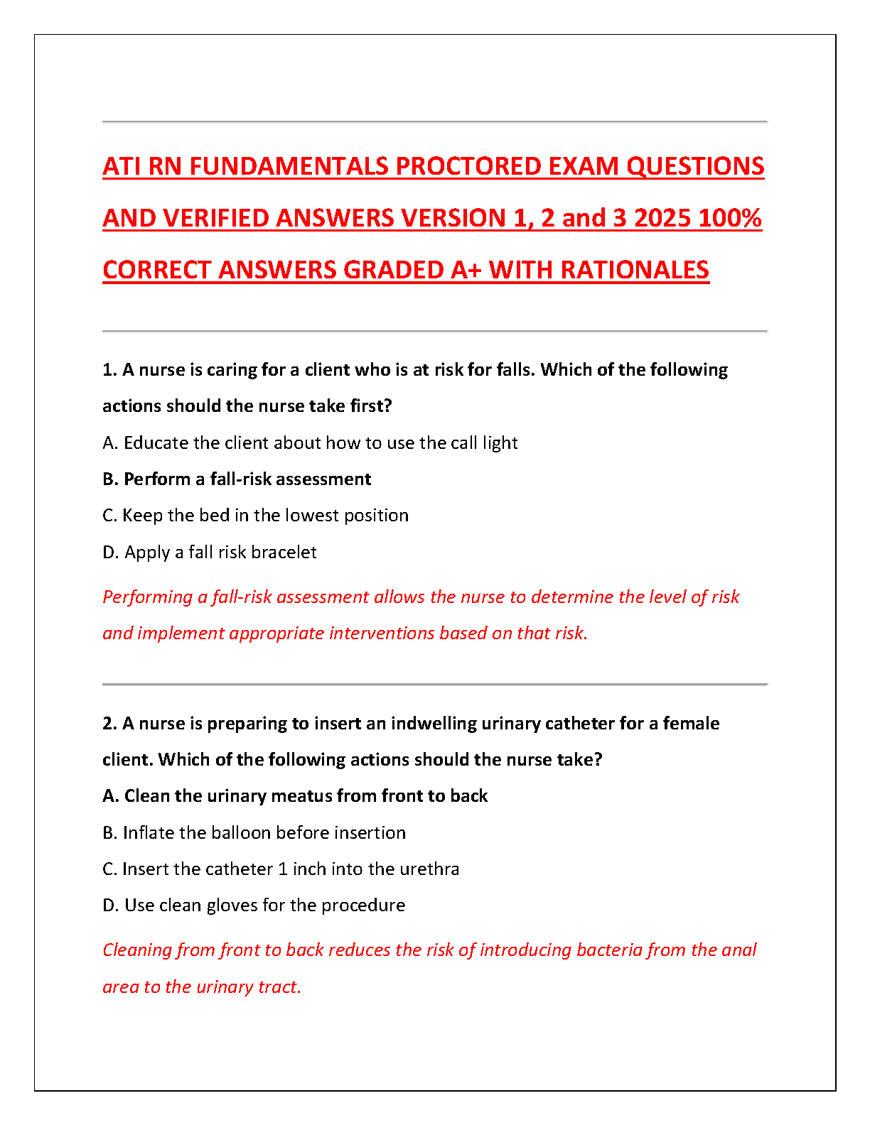ATI RN Fundamentals Proctored Exam 2025 Test Bank (All Versions 1, 2, & 3) | A+ Graded Questions and Rationales to Help You Pass First Time