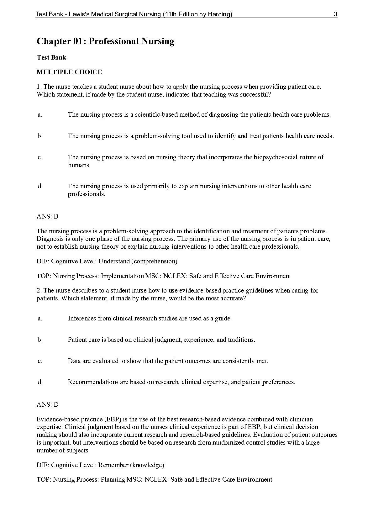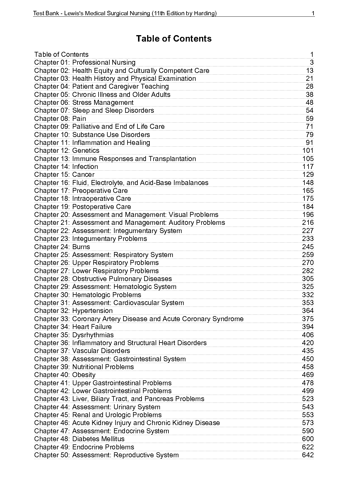 Unlock your full potential and ace your nursing exams with the official Test Bank for Lewis's Medical-Surgical Nursing, 11th Edition, authored by Harding, Kwong, and Roberts. This comprehensive resource is your key to mastering every concept in the textbook, from foundational nursing principles to the intricate management of clinical problems across all body systems. Featuring a vast collection of exam-style questions and detailed rationales for every chapter, this test bank is designed to build your confidence, reinforce your knowledge, and ensure you're fully prepared for success. Don't just study—strategize your way to top grades with this must-have study companion.