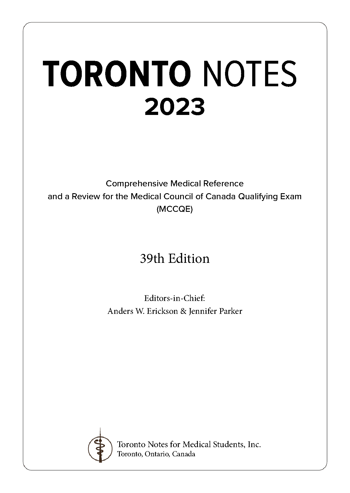 Toronto Notes 2023, 39th Edition by Anders Erickson & Jennifer Parker - Ultimate 2025/2026 MCCQE Study Guide to Pass on Your First Attempt