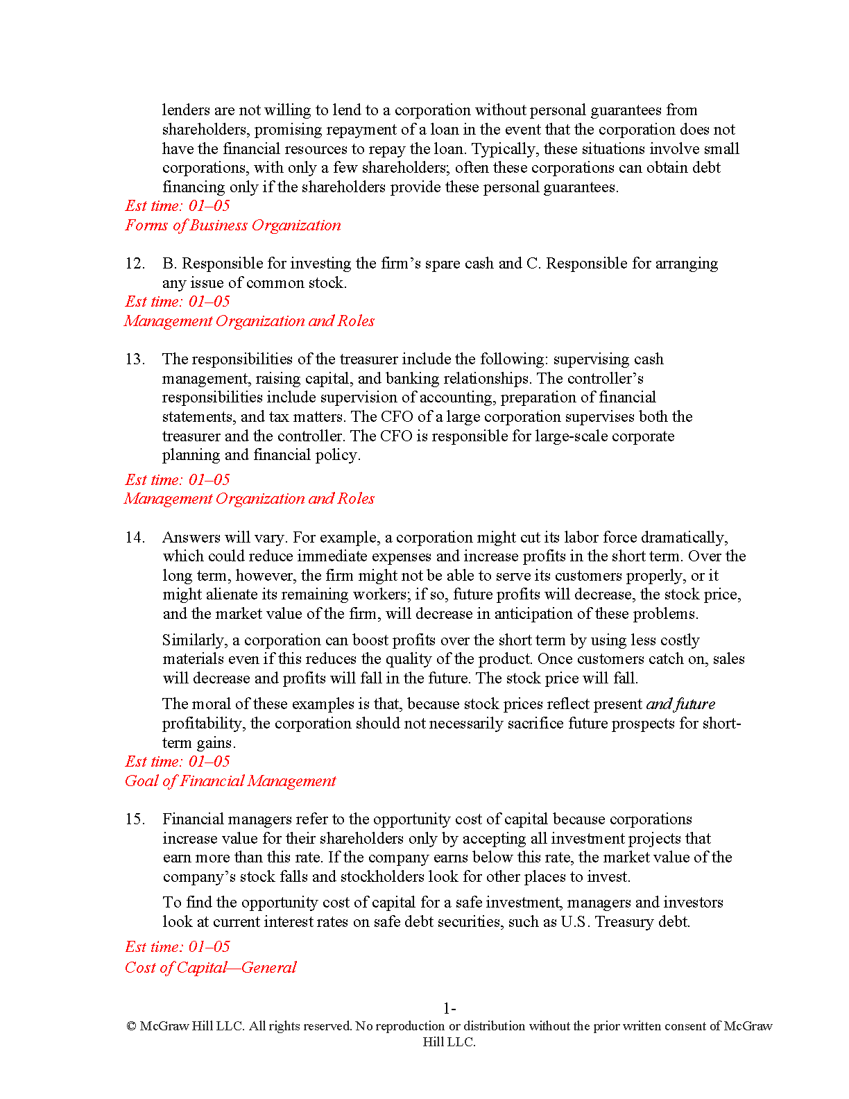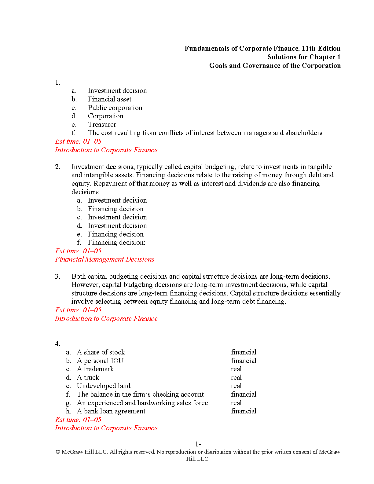 Master the principles of corporate finance with this comprehensive Solution Manual for 'Fundamentals of Corporate Finance,' 11th Edition. Authored by the renowned team of Ross, Westerfield, and Jordan, this guide provides detailed, step-by-step answers and explanations for every chapter, including 'Goals and Governance of the Corporation.' It is an indispensable tool for students seeking to excel in their coursework, verify their homework, and thoroughly prepare for exams. Gain the confidence and understanding needed to ace your finance course.