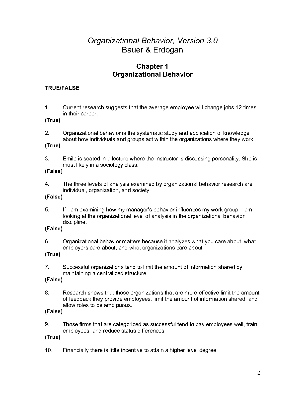 Test Bank for Organizational Behavior: Bridging Science and Practice, 3rd Edition (v3.0) by Talya Bauer, Berrin Erdogan