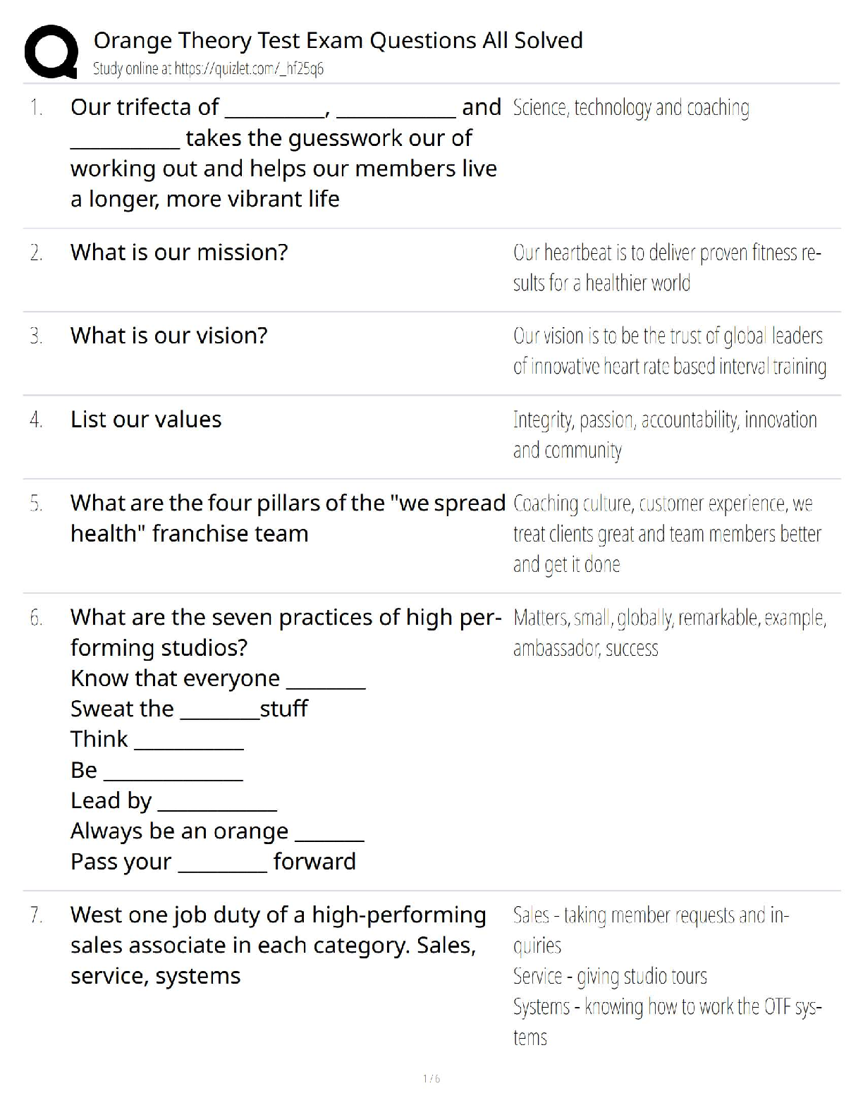 Get ready to ace your Orange Theory Fitness certification exam with our comprehensive test bank for the 2025/2026 season. This study guide features a complete collection of the latest exam questions, all with verified, solved answers. Master key concepts including the OTF mission, vision, values, the four pillars of the franchise, and the seven practices of high-performing studios. This is the ultimate resource to ensure you pass your test on the first attempt and kickstart your career with Orange Theory.