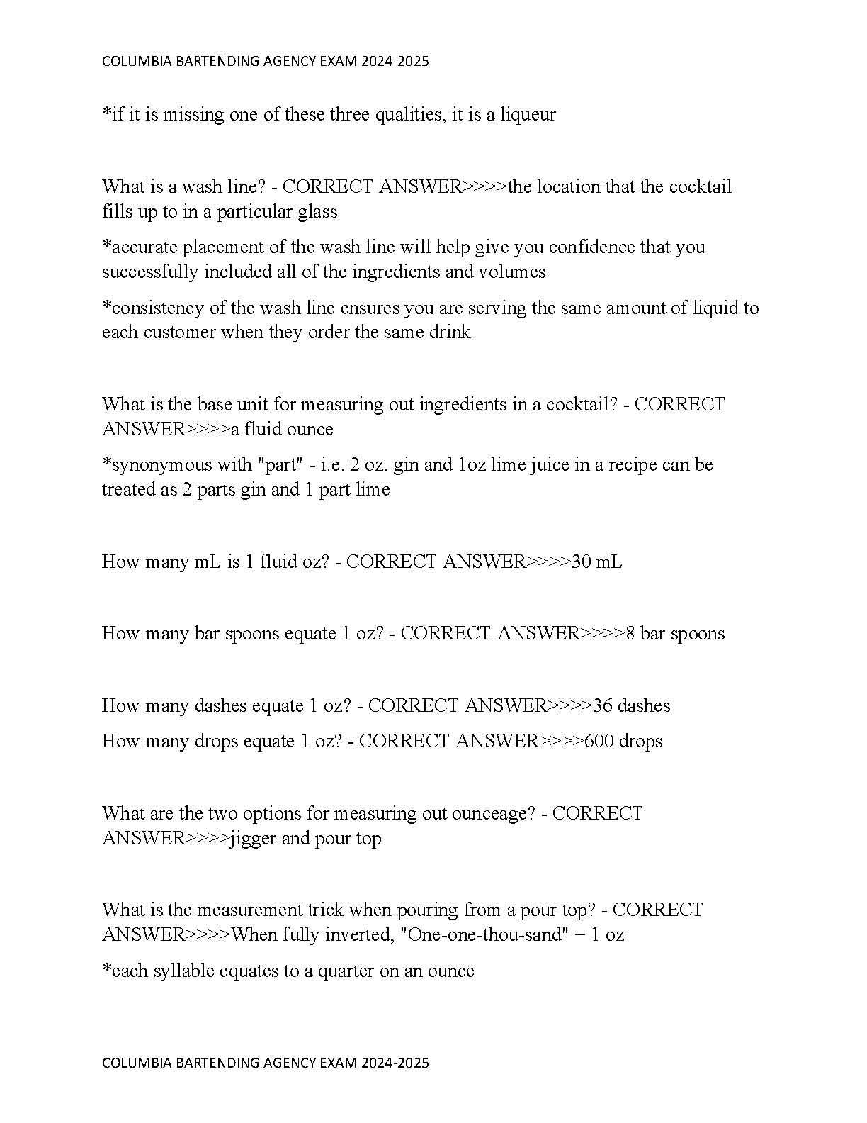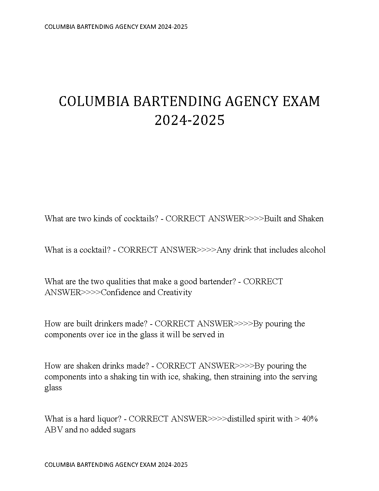 Latest 2024-2025 Columbia Bartending Agency Exam Test Bank | Verified Q&A to Pass Your Certification First Try