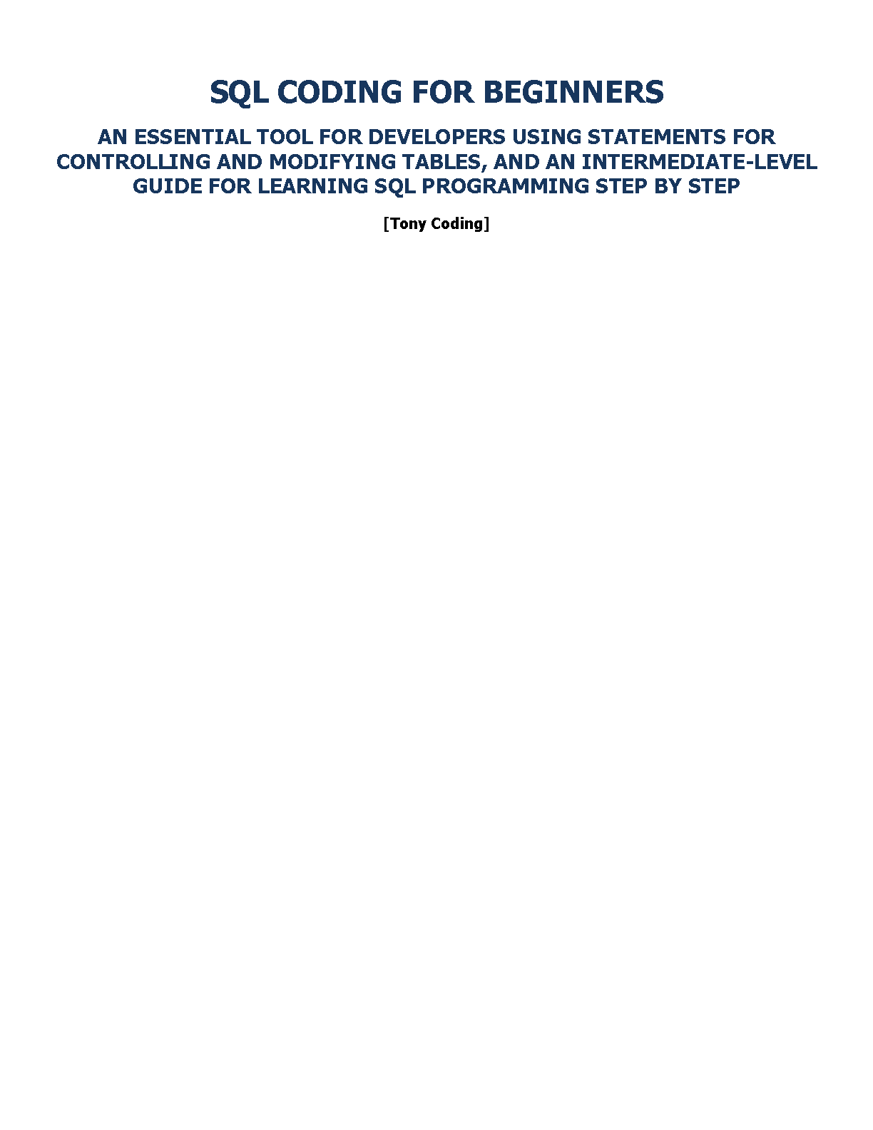 Unlock the power of databases with the latest 2025/2026 guide to SQL! This comprehensive resource, 'SQL Coding for Beginners' by Tony Coding, is meticulously designed to take you from novice to proficient. Learn essential SQL statements step-by-step, master table control and modification, and build a solid foundation for your developer career. This guide is the perfect study companion to help you ace your exams on the first try and avoid costly resits. Get ready to master SQL programming with this clear, intermediate-level tutorial.