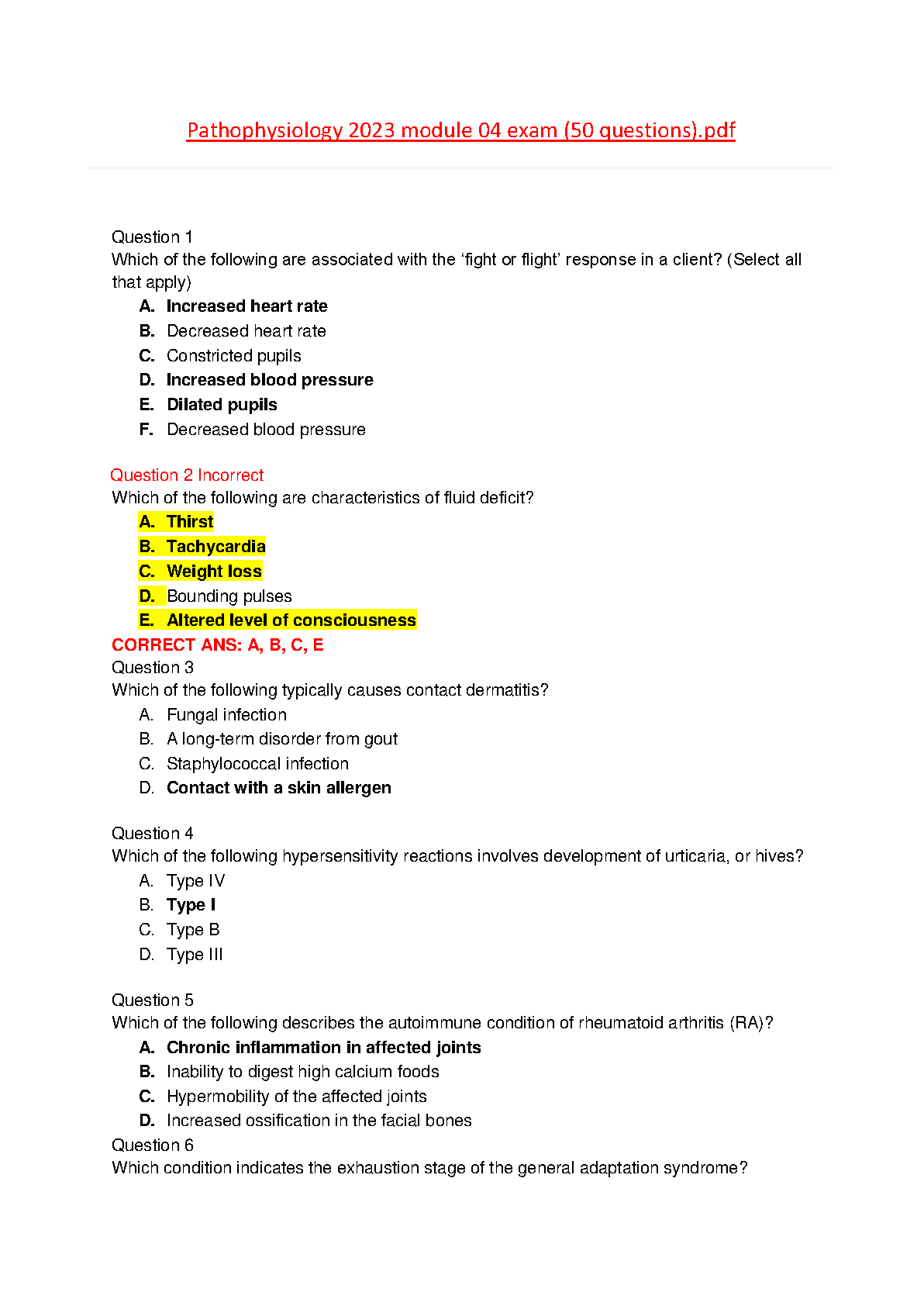 Ace your pathophysiology exams with the complete Test Bank for Module 4 of 'Pathophysiology: The Biologic Basis for Disease in Adults and Children,' 9th Edition by McCance and Huether. This 2023 updated resource contains 50 exam-style questions and verified answers, covering crucial topics like the fight-or-flight response, fluid deficits, and hypersensitivity. Perfect for nursing and health science students looking to master complex concepts and pass their exams with confidence on the first attempt.