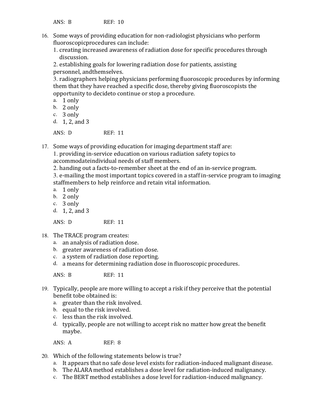 TEST BANK FOR RADIATION PROTECTION IN MEDICAL RADIOGRAPHY 8TH EDITION Mary Alice Statkiewicz Sherer AS RT(R) FASRT , Paula J. Visconti PhD DABR, E. Russell Ritenour PhD DABR FAAPM FACR, Kelli Welch Haynes RT (R) FASRT