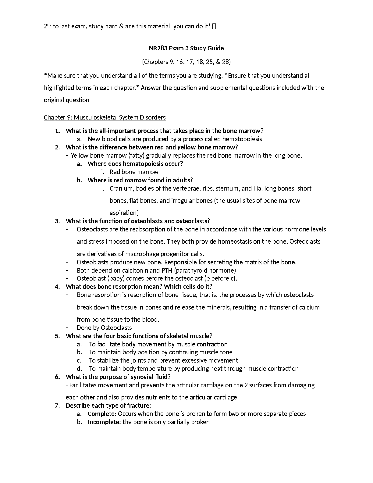 Master NR283 Pathophysiology Exam 3: In-Depth Study Guide for Chapters 9, 16, 17, 18, 25, 28 | Updated 2025/2026 Edition for First-Attempt Success