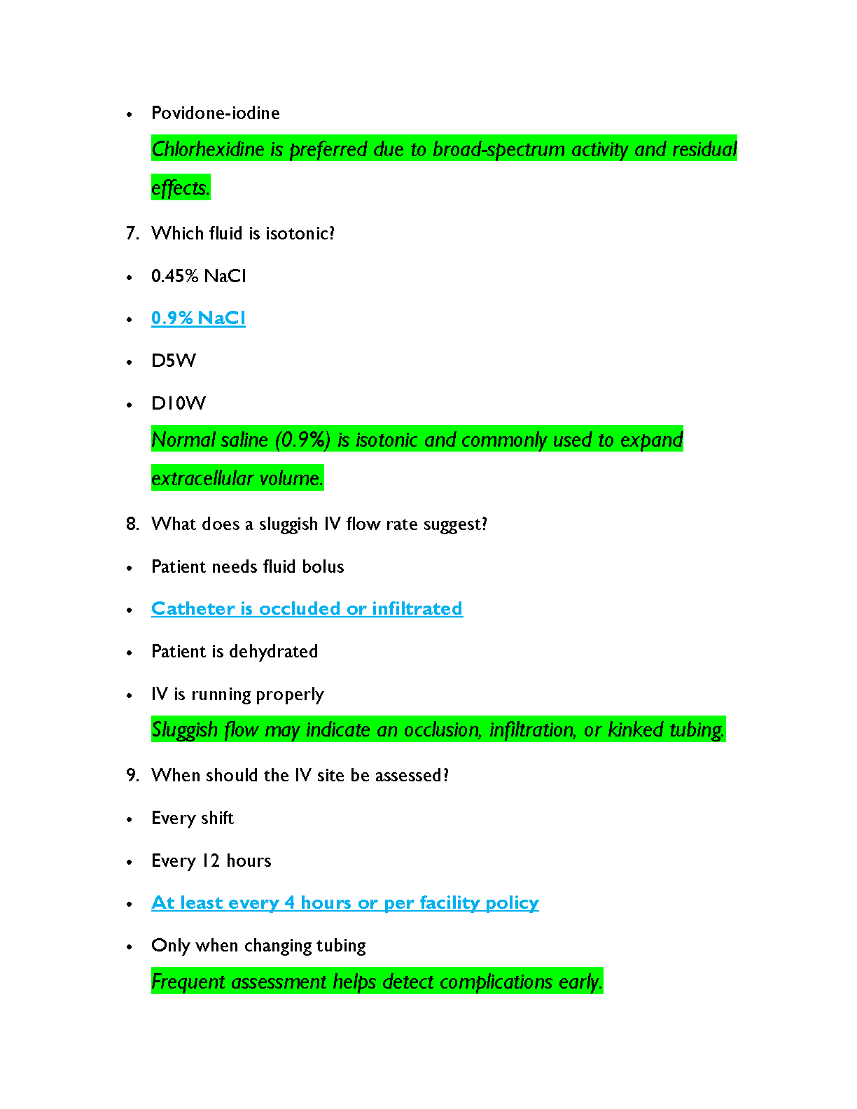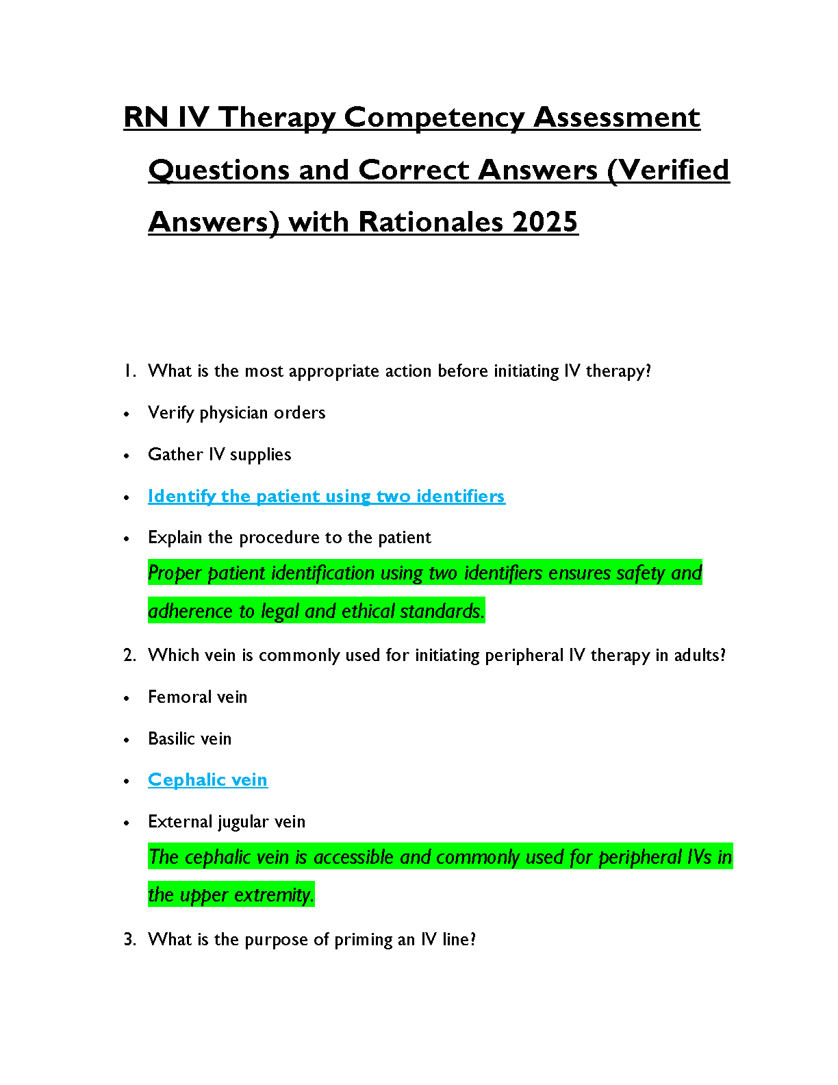 Prepare to excel in your nursing career with our latest 2025 RN IV Therapy Competency Assessment Test Bank. This essential resource is meticulously designed to help you master the critical skills of intravenous therapy. Inside, you will find an extensive collection of practice questions that mirror the actual exam, complete with verified answers and in-depth rationales. Each rationale explains the 'why' behind the correct answer, solidifying your understanding of key principles from patient identification to vein selection. Stop worrying about resits and build the confidence you need to pass your IV competency assessment on the very first attempt. Download now and take the first step towards becoming an IV therapy expert!
