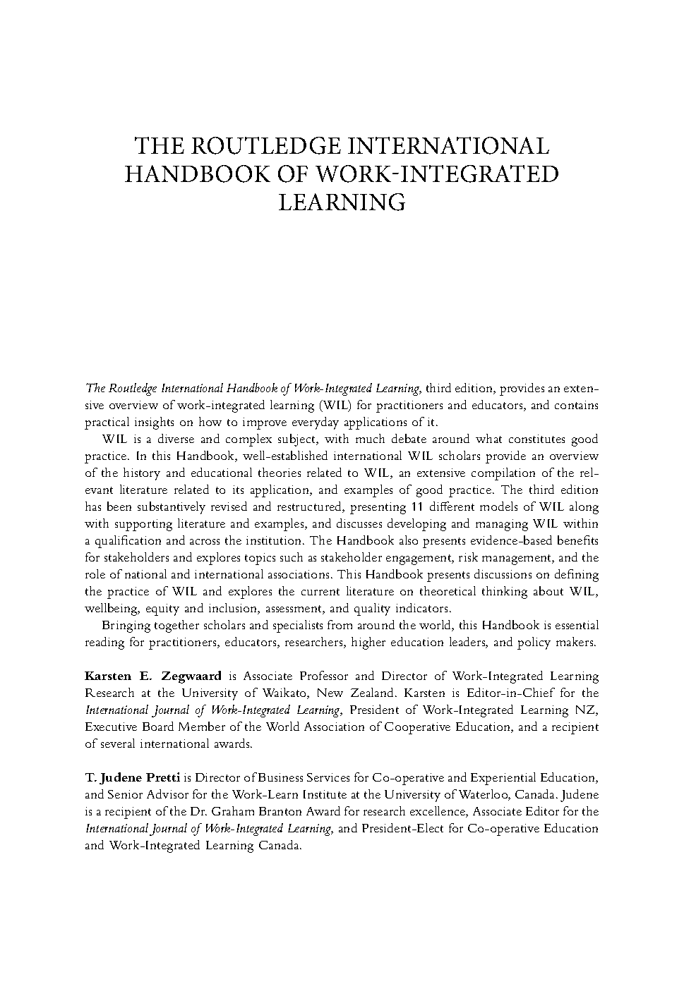 Master your course and ace your exams on the first attempt with this essential 2025/2026 resource: The Routledge International Handbook of Work-Integrated Learning, Third Edition. Edited by leading experts Karsten E. Zegwaard and T. Judene Pretti, this comprehensive guide provides an in-depth exploration of the connection between academic study and practical professional experience. Covering global perspectives, quality assurance, and innovative practices, this handbook is the ultimate tool for students aiming to excel in their studies and avoid resits by thoroughly understanding the core principles of work-integrated learning.