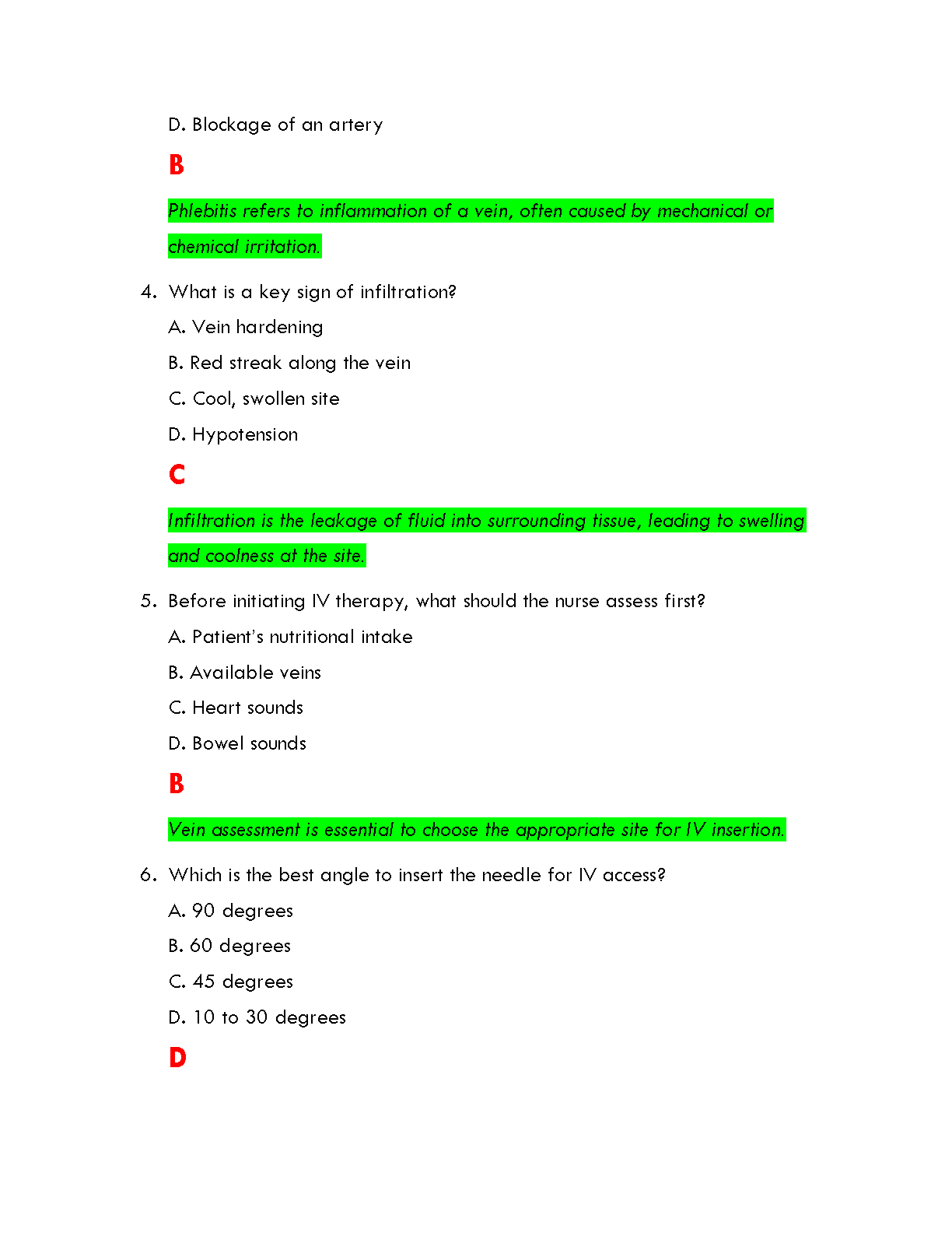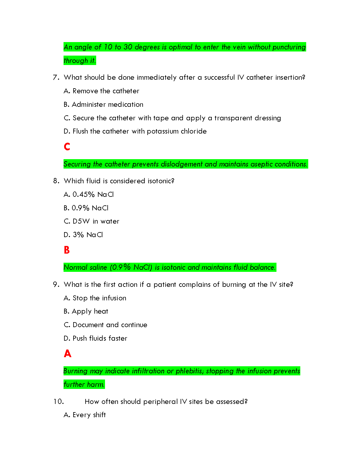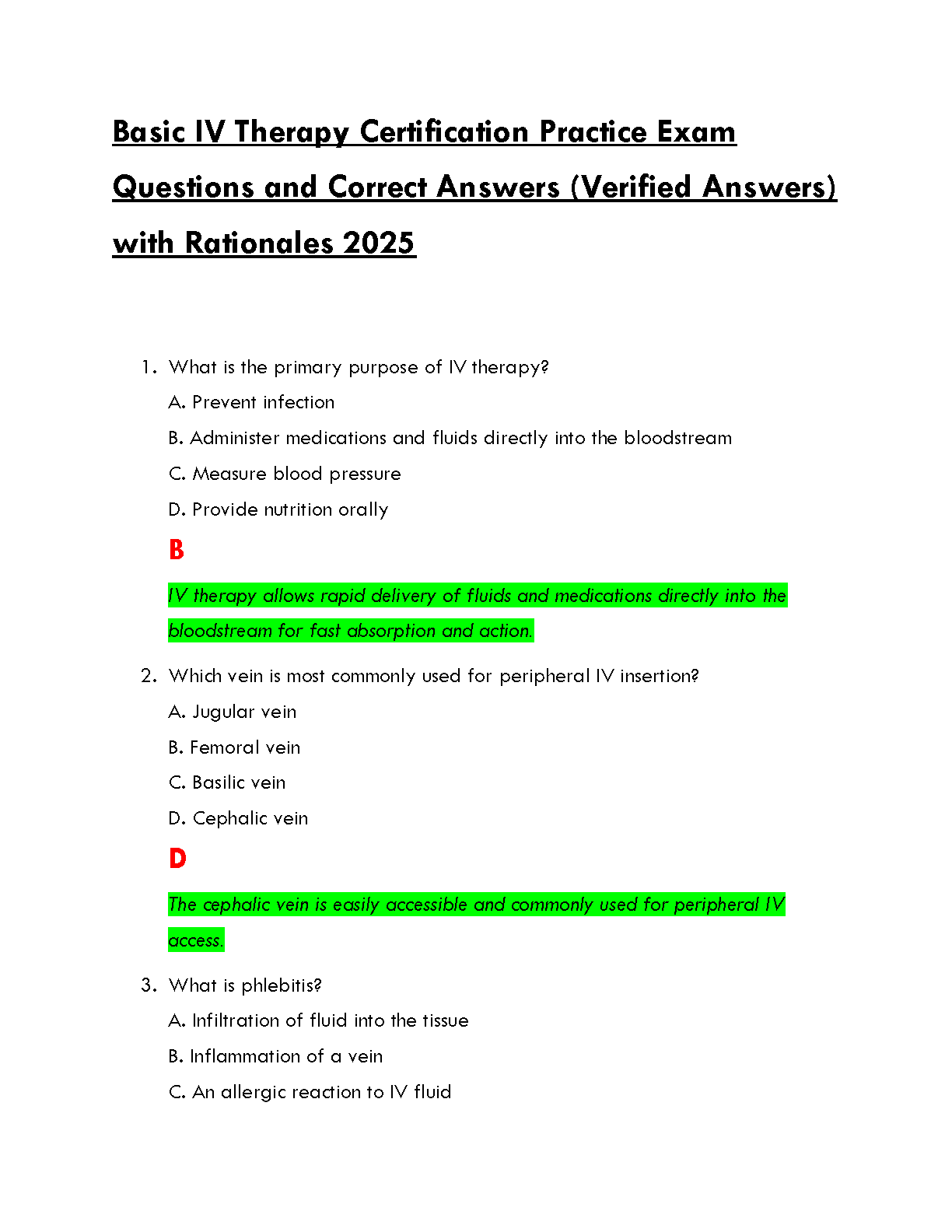 Basic IV Therapy Certification Exam Test Bank 2025: Master the Exam with Verified Questions, Answers, and Detailed Rationales
