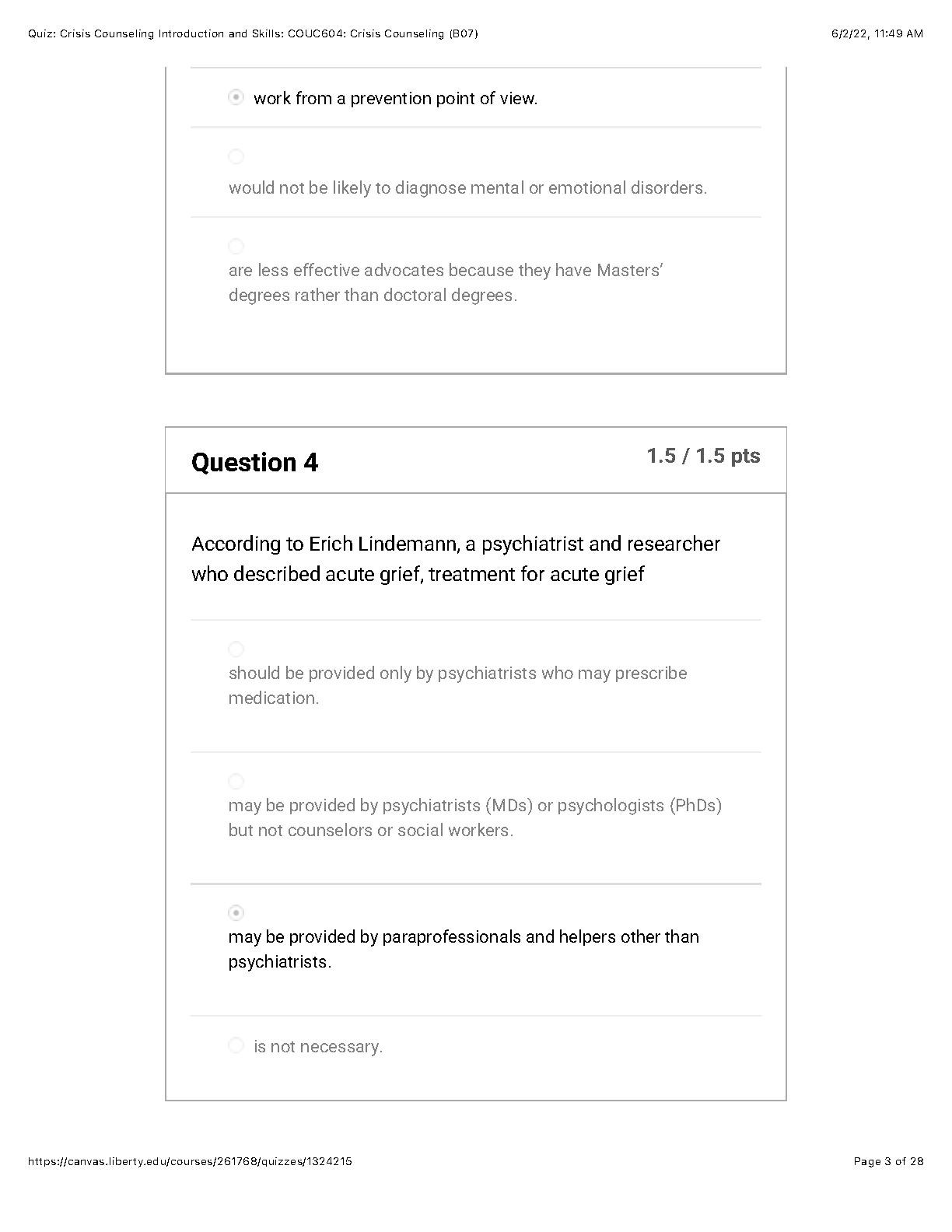 Test Bank for COUC604 Crisis Counseling: Introduction and Skills Quiz (Modules 1-4) | Based on Crisis Intervention Strategies, 9th Edition by Richard K. James & Burl E. Gilliland