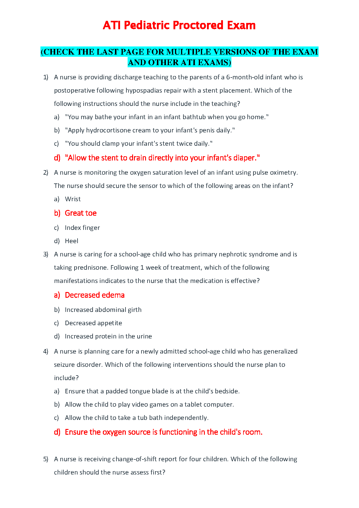 ATI Pediatric Proctored Exam 2025/2026: Comprehensive Test Bank with Questions & Answers to Pass on Your First Attempt