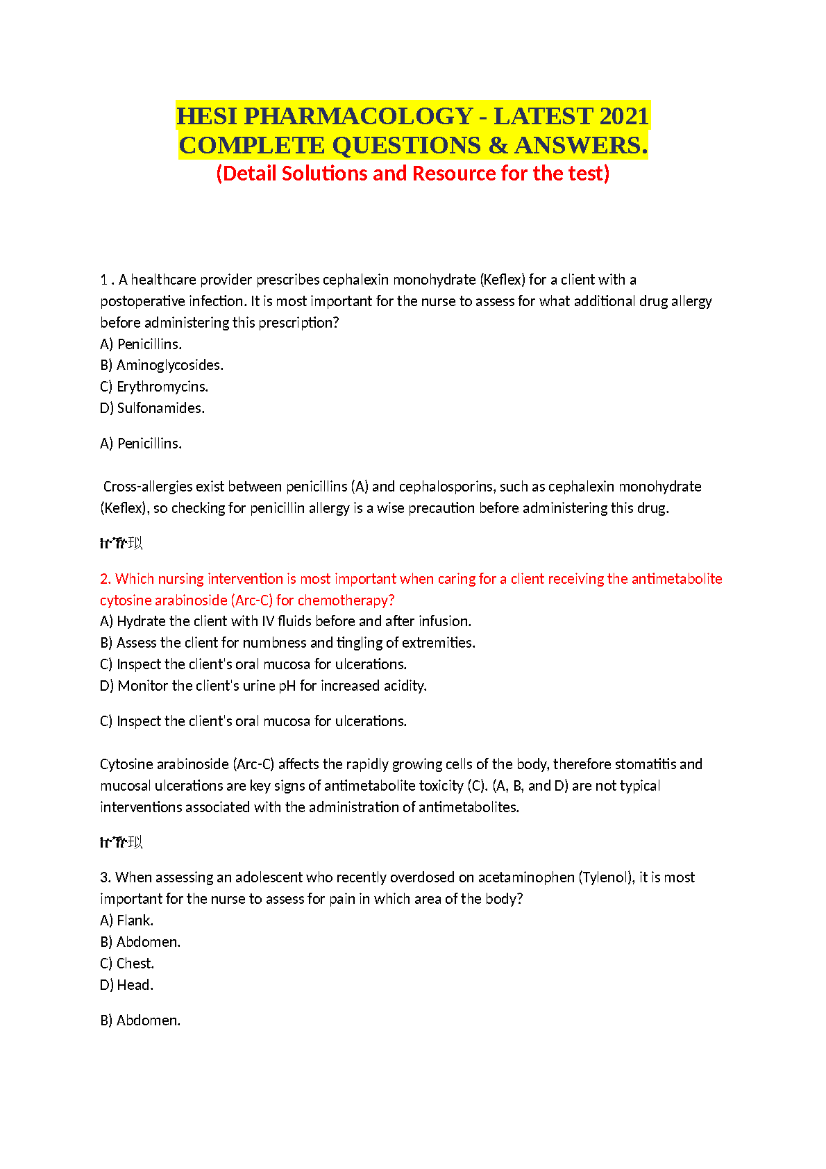 Prepare to excel in your HESI Pharmacology exam with our newly updated 2025/2026 study guide. This comprehensive resource is packed with a wide range of practice questions that mirror the actual test format. Each question comes with a detailed, verified answer and a clear rationale, helping you understand the core concepts of pharmacology, not just memorize facts. Designed for nursing students aiming for a top score, this guide is your key to mastering complex topics, boosting your confidence, and passing the HESI Pharmacology exam on your very first attempt. Stop worrying about resits and start studying smarter today!