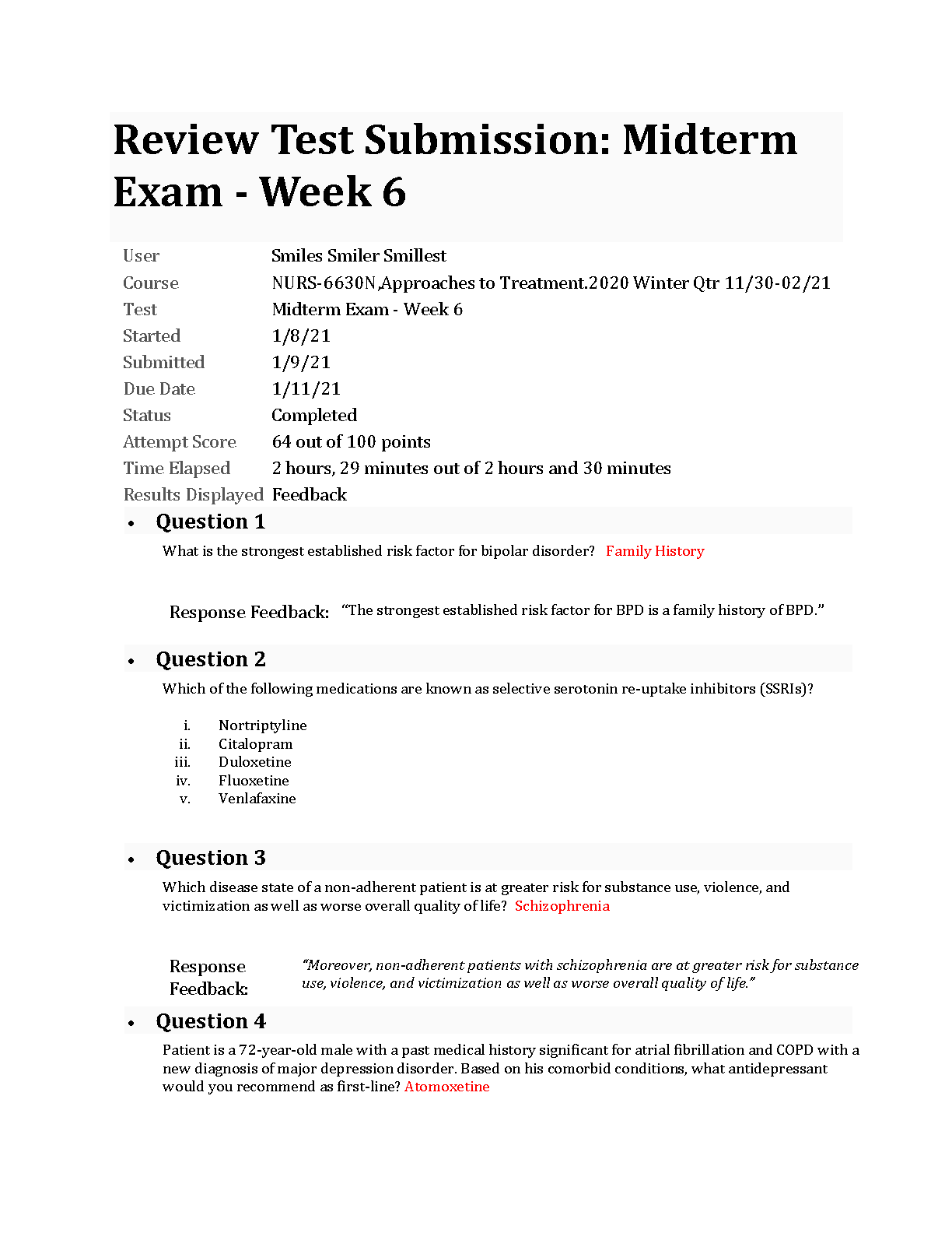 NURS-6630N Approaches to Treatment: Midterm Exam (Week 6) Test Bank with Verified Questions and Answers | 2024/2025 Update