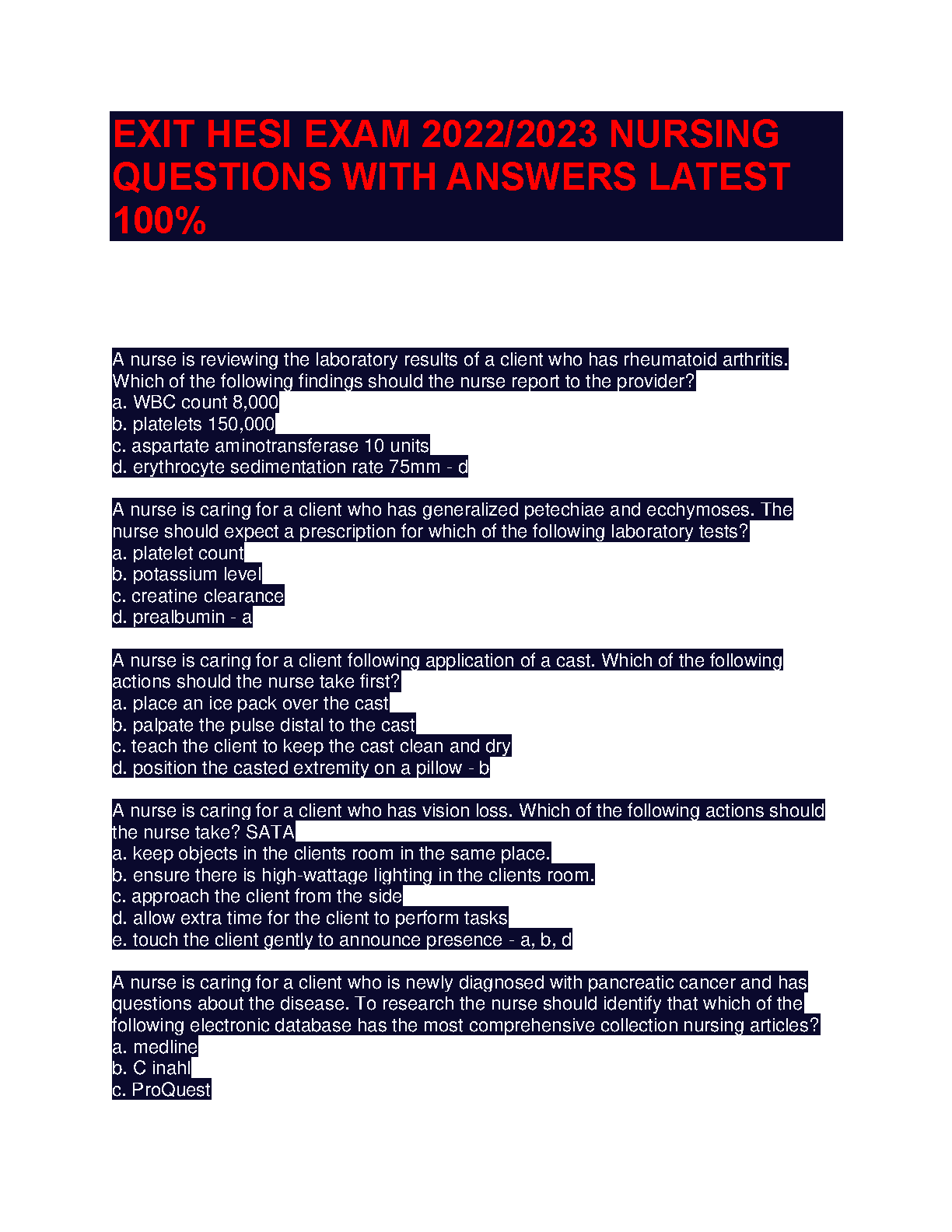 HESI Exit Exam 2023: Comprehensive Nursing Test Bank with 100% Verified Questions and Answers