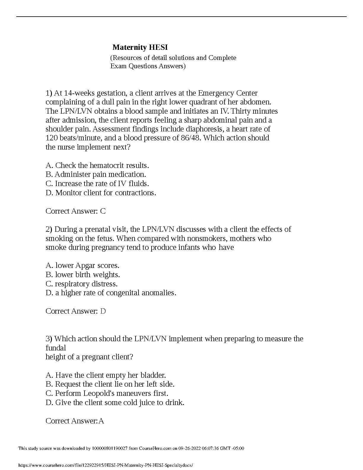 Prepare to excel in your Maternity HESI exam with our latest 2025/2026 test bank. This comprehensive resource is packed with a wide range of practice questions and detailed, verified answers covering all critical areas of maternity nursing. Designed specifically for nursing students (LPN/LVN), this study guide provides the in-depth knowledge and practice needed to understand complex scenarios and answer questions with confidence. Master key concepts, improve your test-taking skills, and walk into your exam fully prepared to pass on the very first try. Avoid the stress of resits with this essential tool for academic success.