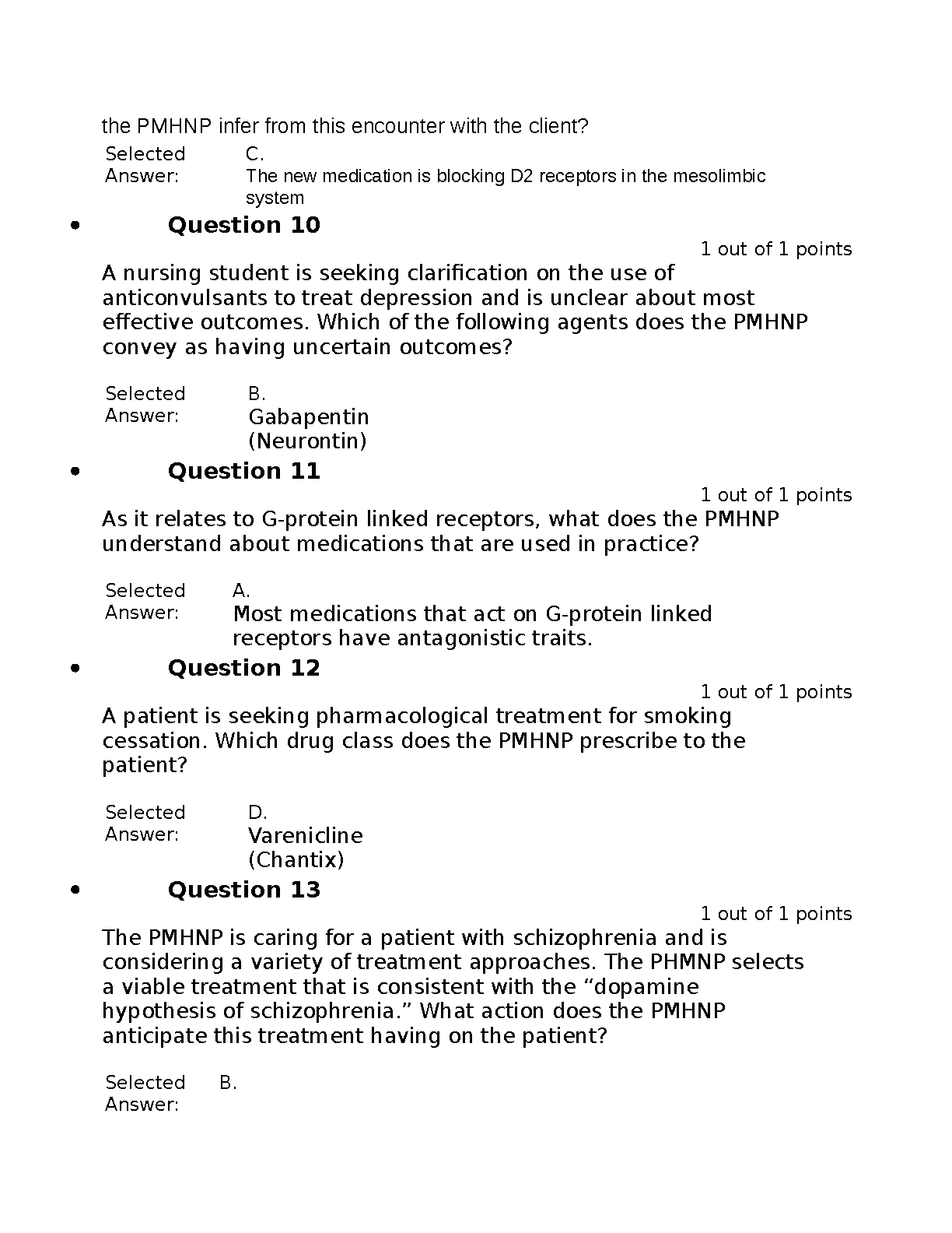Unlock academic success in your Psychopharmacology course with this comprehensive study guide for the NURS 6630 Midterm Exam. This latest 2025/2026 edition features a complete set of exam questions paired with expertly verified answers, designed to help you master complex topics and pass on your first attempt. Dive deep into essential PMHNP concepts such as neurotransmitter systems, medication management for bipolar disorder, and appropriate treatment protocols. This resource is your ultimate tool for effective preparation, building confidence, and securing an A+ grade, ensuring you avoid resits and excel in your nursing studies.