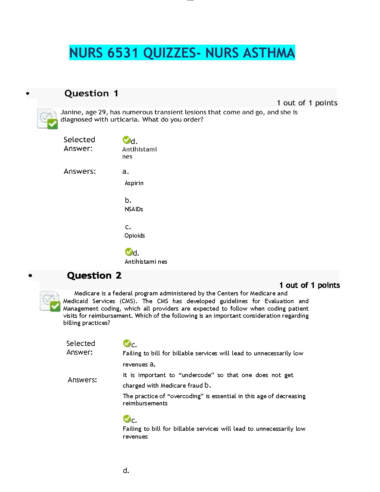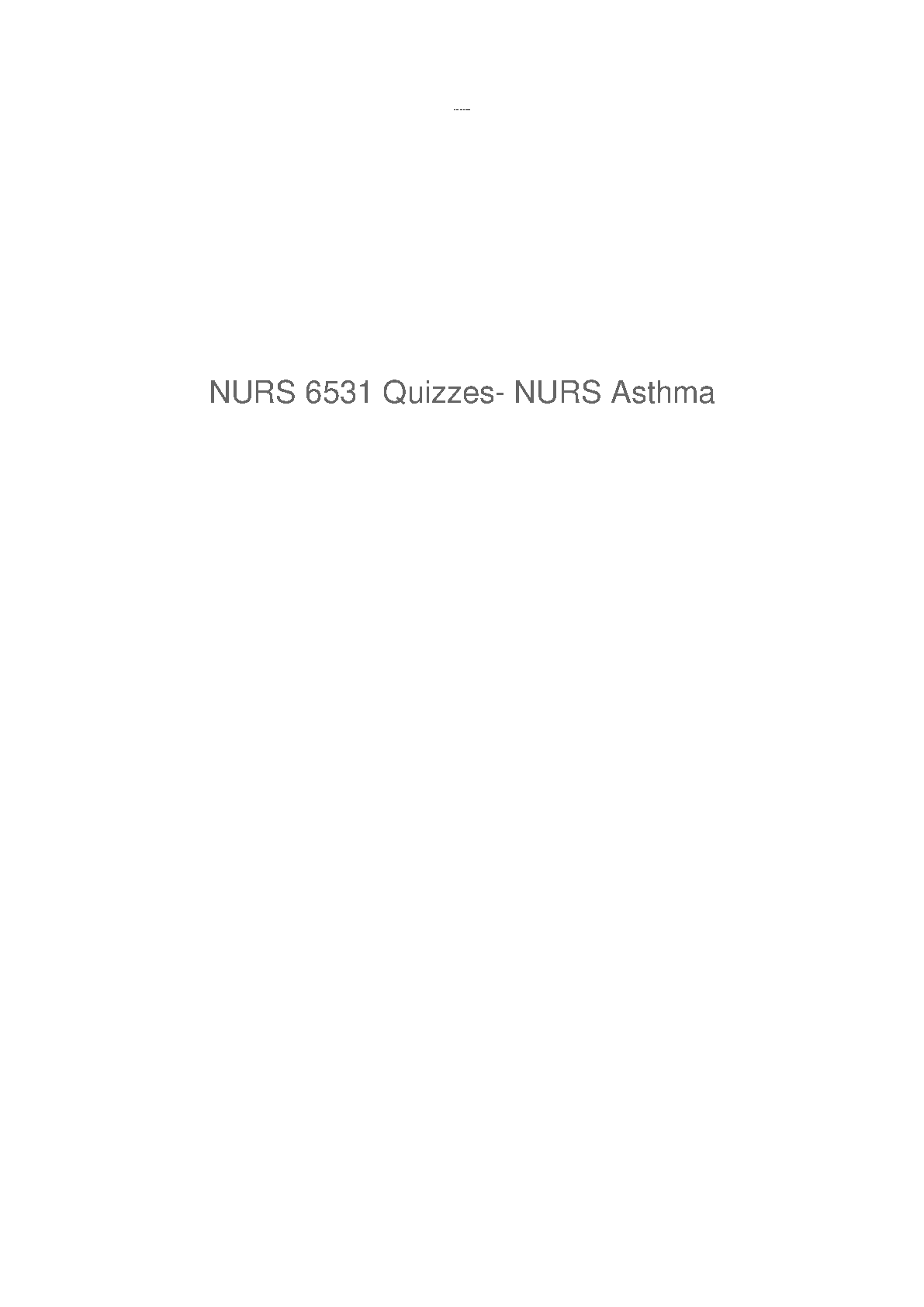 NURS 6531 Advanced Pharmacology Asthma Quiz Test Bank (Based on 5th Edition by Woo & Robinson)