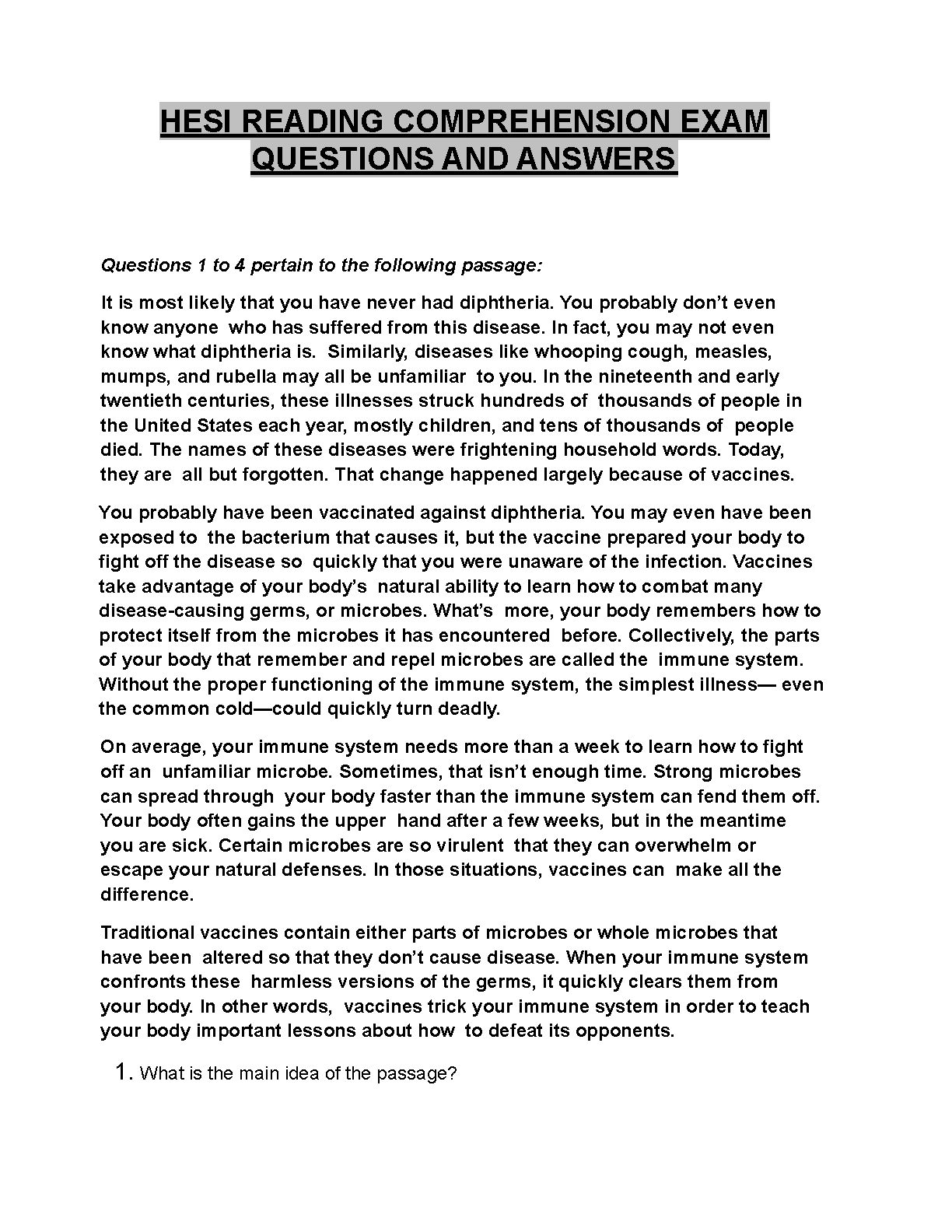 HESI Reading Comprehension Exam 2025/2026: Complete Q&A Study Guide for First-Attempt Success