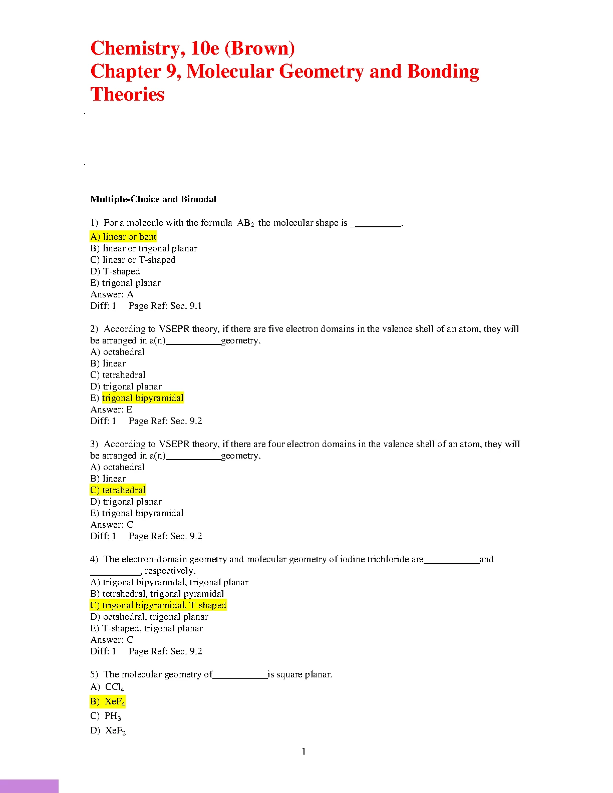 TEST BANK FOR Chemistry, 10TH EDITION (BY Brown)