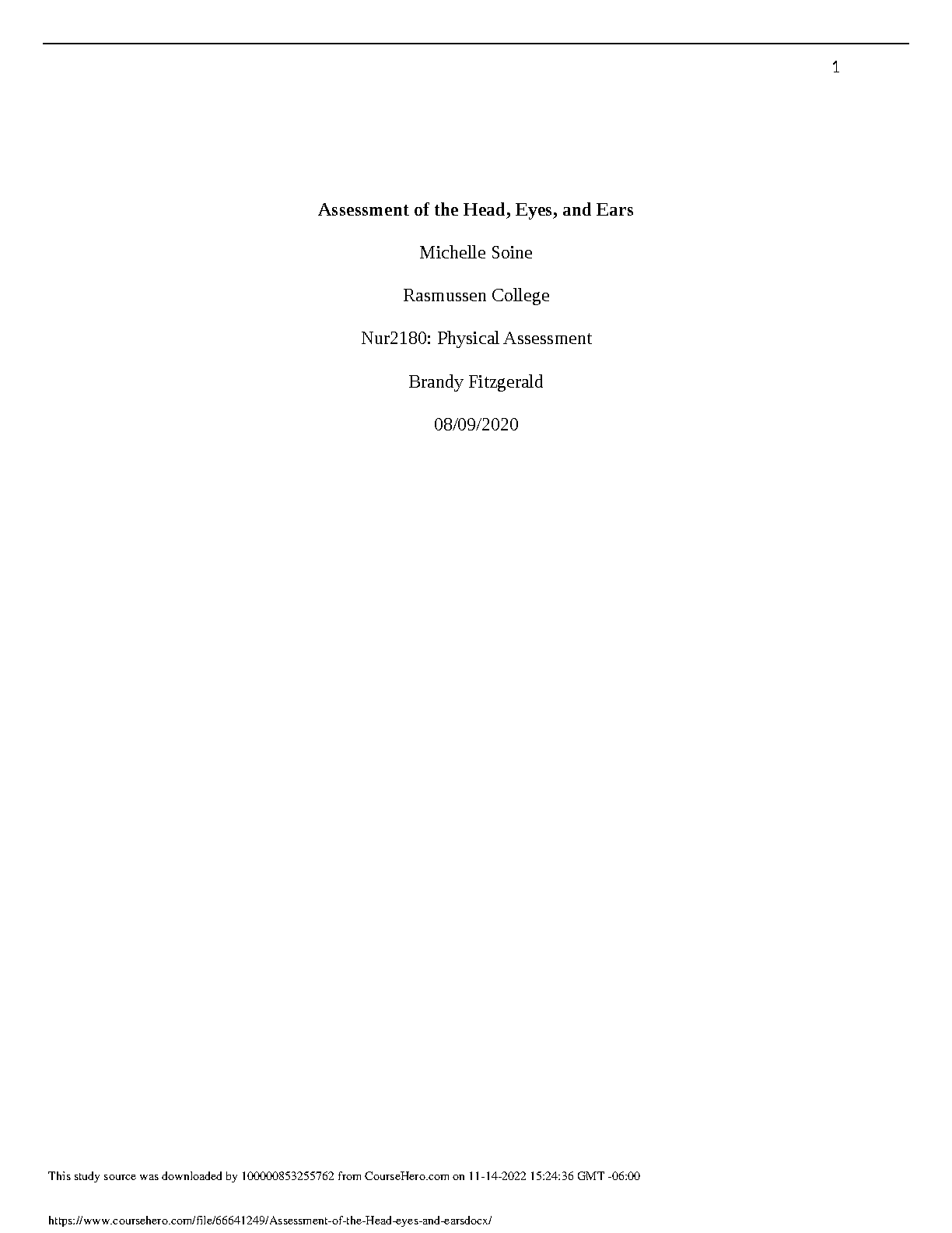 Nur2180 Physical Assessment: Comprehensive Guide to Head, Eyes, and Ears Assessment | Latest 2025/2026 Edition for Rasmussen Students to Pass Exams First Try