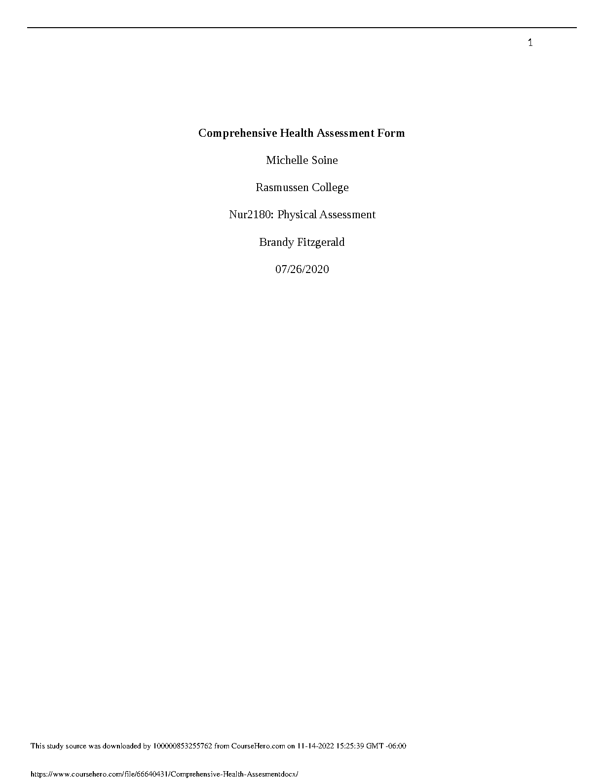 Nur2180 Physical Assessment: Comprehensive Health Assessment Form | Rasmussen College | Latest 2025/2026 A+ Study Guide
