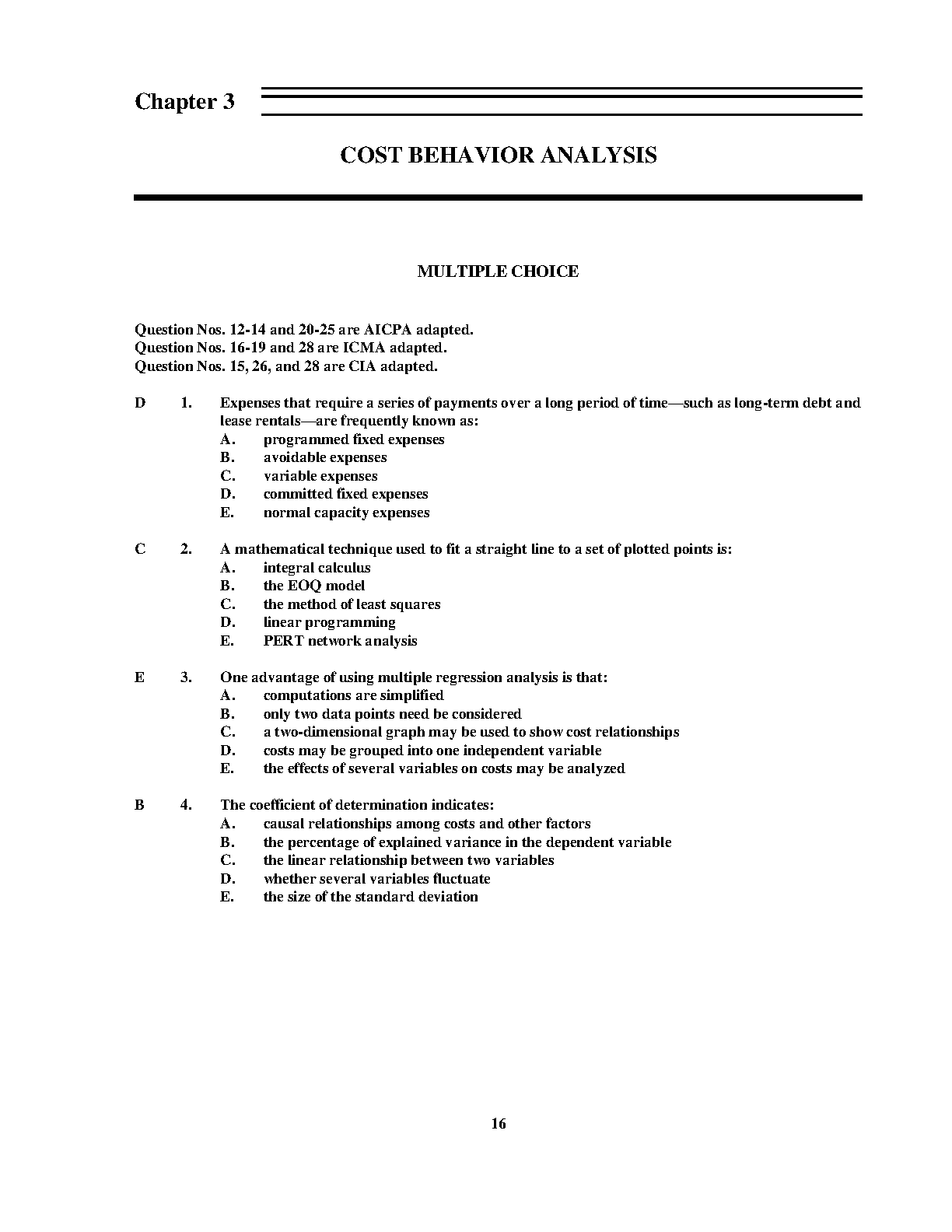 Unlock top grades in your managerial accounting course with the official Test Bank for 'Cost Accounting: A Managerial Emphasis,' 17th Edition by Horngren, Datar, and Rajan. This resource provides the complete collection of exam questions and verified answers for Chapter 3: Cost Behavior Analysis. Dive deep into practice questions adapted from real AICPA, ICMA, and CIA exams to master concepts like regression analysis, fixed and variable costs, and the coefficient of determination. This is the ultimate study tool to help you understand complex topics, prepare effectively for your exams, and pass on your first attempt. Download now and start studying smarter!