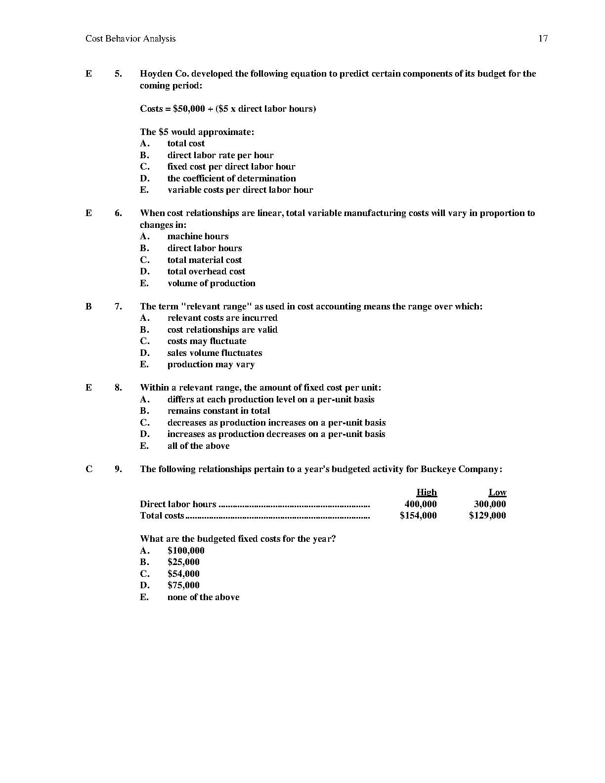 Test Bank for Cost Accounting: A Managerial Emphasis, 17th Edition by Horngren, Datar & Rajan - Chapter 3 Cost Behavior Analysis