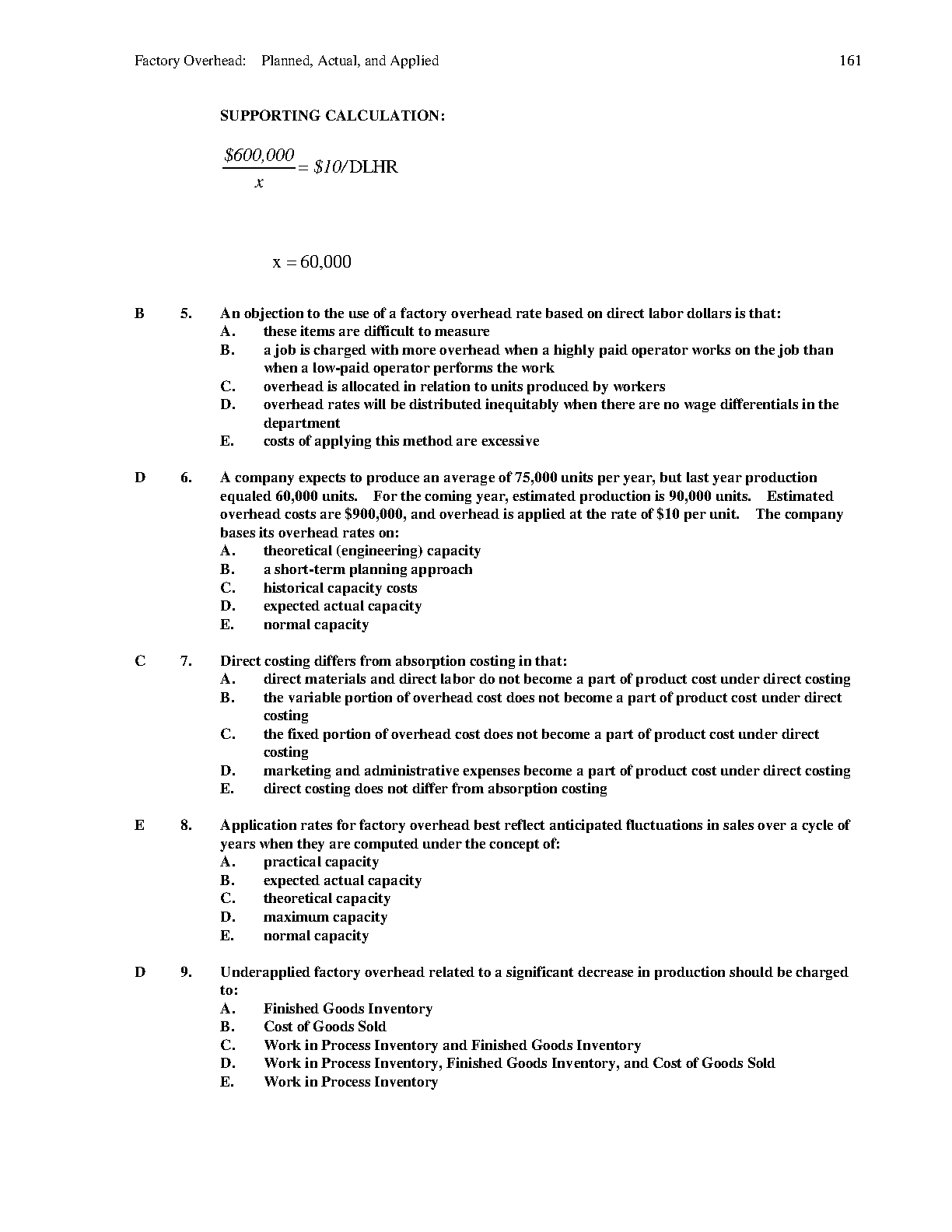 Test Bank for Cost Accounting Planning and Control, 9th Edition by Adolph Matz and Milton F. Usry - Chapter 12: Factory Overhead