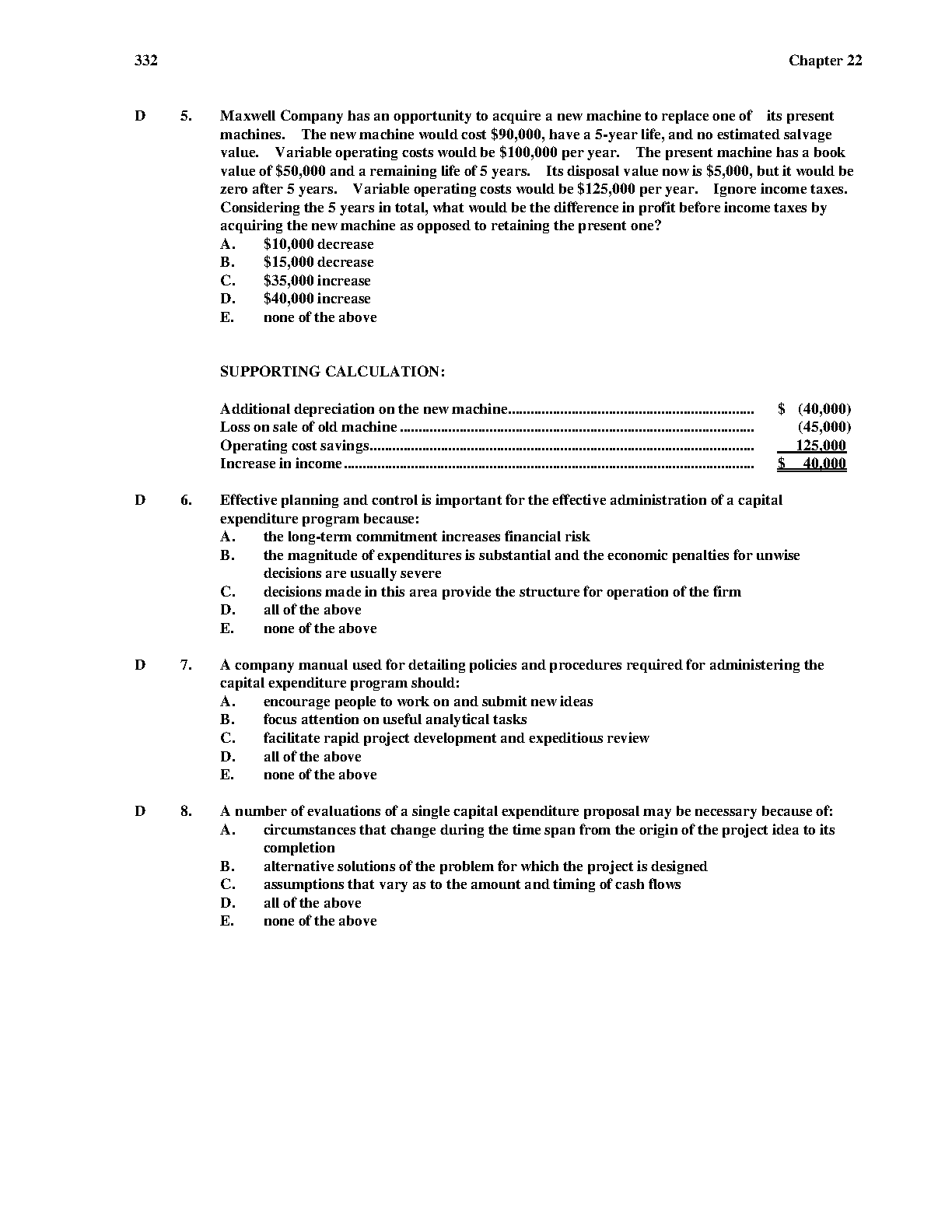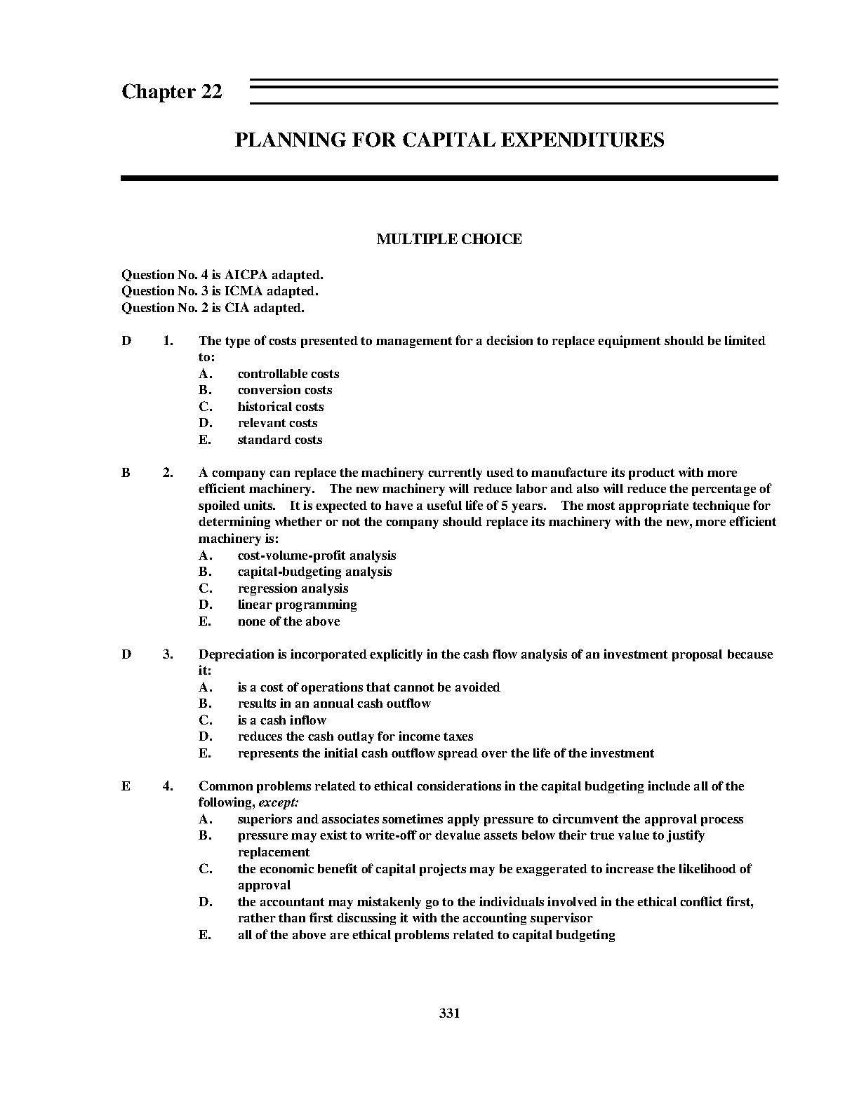 Master your Cost Accounting course with this authentic Test Bank for the 16th Edition of 'Cost Accounting: A Managerial Emphasis' by the renowned authors Horngren, Datar, and Rajan. This essential study tool is packed with a vast array of questions, including multiple-choice and complex problems, complete with verified solutions. Dive deep into topics like Chapter 22, 'Planning for Capital Expenditures,' to solidify your understanding and build confidence. Perfect for exam preparation, this test bank is your key to achieving top grades and truly comprehending managerial accounting principles.
