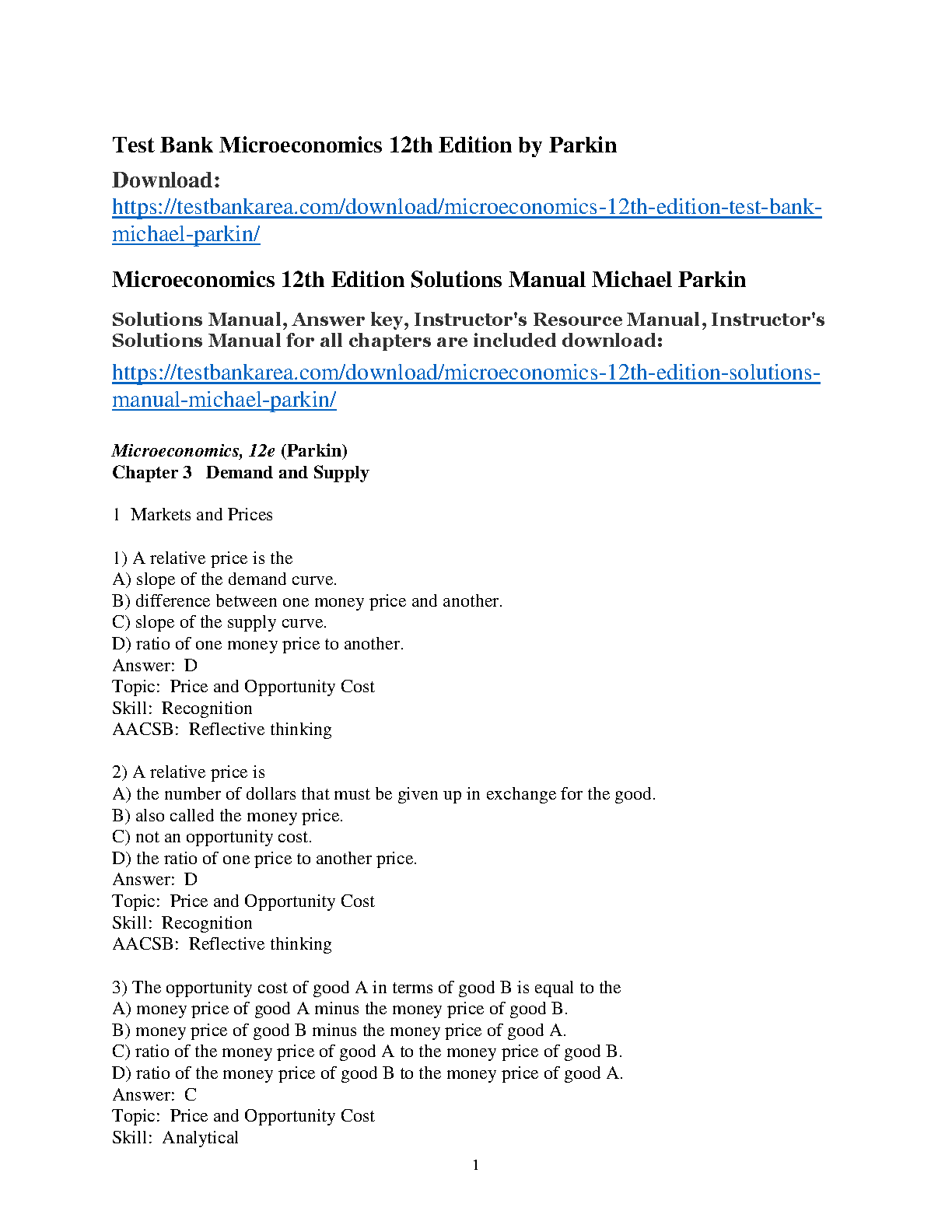Instantly download the complete Test Bank for Microeconomics, 12th Edition by Michael Parkin. This comprehensive resource is packed with a vast array of multiple-choice questions, true/false, and problem-solving exercises, complete with detailed answers and rationales, covering every chapter of the textbook. Master key concepts like demand and supply, market structures, and economic policy. This is the ultimate study tool to help you prepare effectively, test your knowledge, and ace your microeconomics exams with confidence. Get the grades you want with this essential exam prep resource.