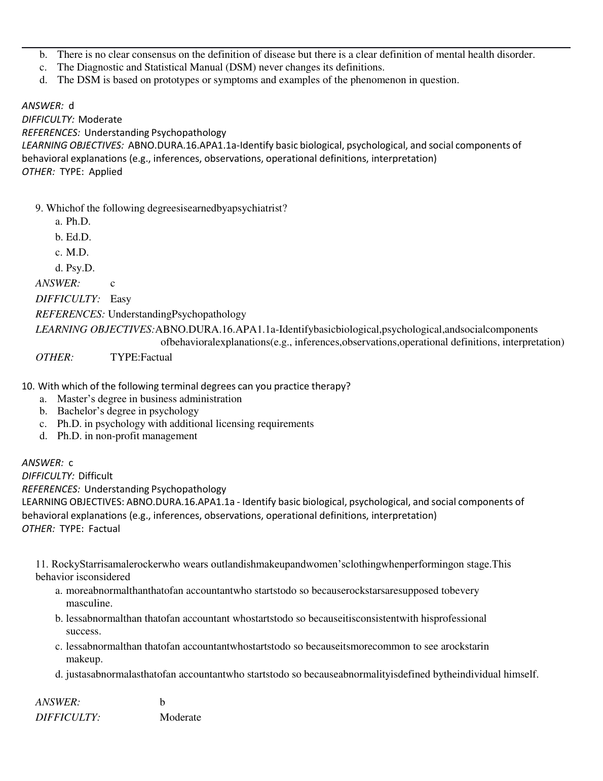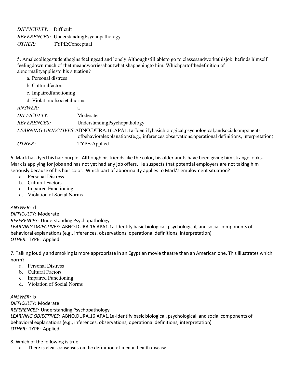 TEST BANK FOR ARBNORMAL PSYCHOLOGY 8TH EDITION, BARLOW