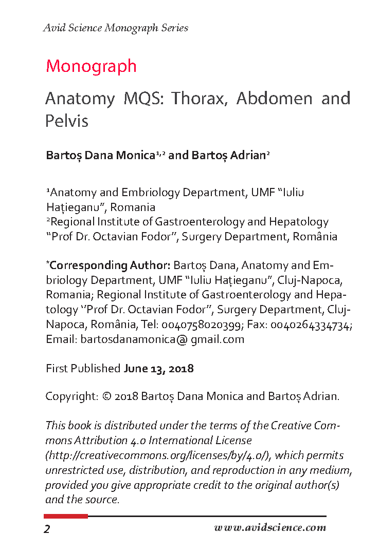 Test Bank for Anatomy MCQ: Thorax, Abdomen and Pelvis, 1st Edition by Bartoș Dana and Bartoș Adrian