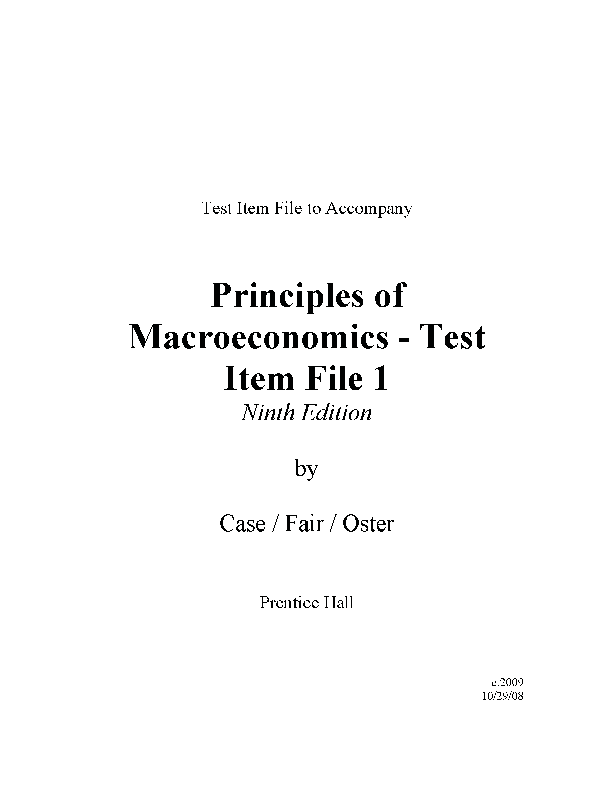 Test Bank for Principles of Macroeconomics, 9th Edition by Karl E. Case, Ray C. Fair, and Sharon M. Oster