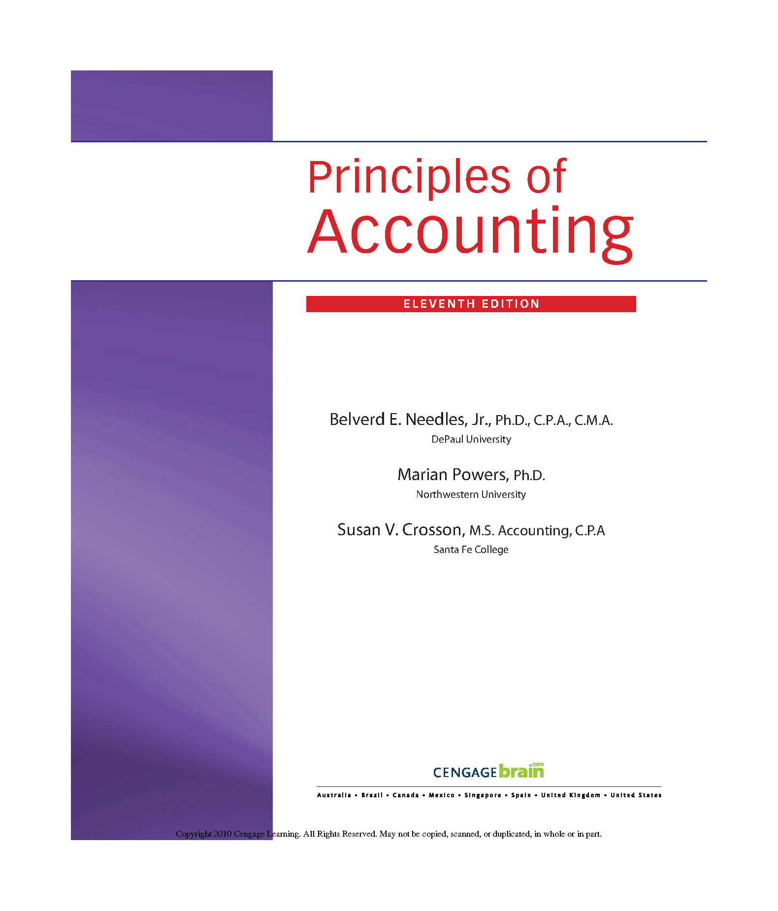Test Bank for Principles of Accounting, 11th Edition by Belverd E. Needles, Marian Powers, Susan V. Crosson