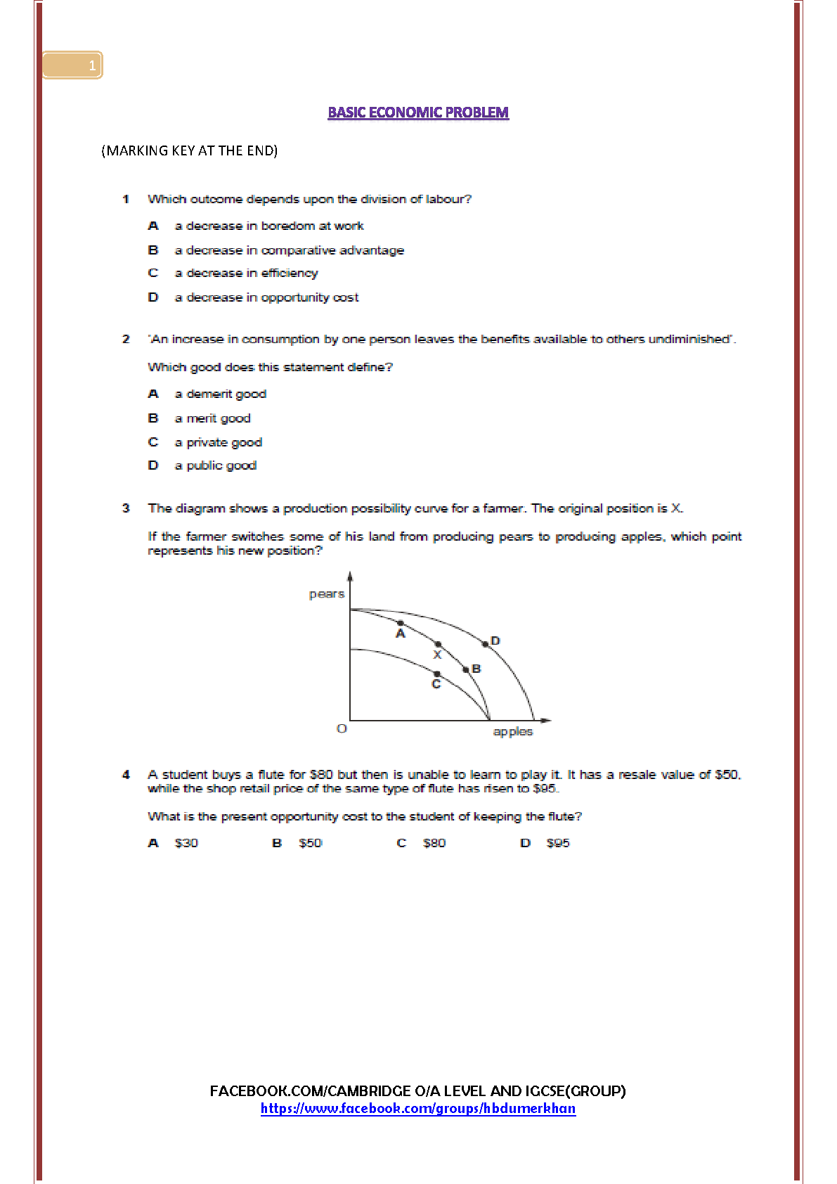 Master the fundamentals for your Cambridge O/A Level and IGCSE Economics exams with this targeted test bank. This essential resource focuses on 'The Basic Economic Problem,' featuring a comprehensive set of multiple-choice questions on key concepts like division of labour, opportunity cost, public goods, and Production Possibility Curves (PPC). A complete marking key is included to help you track your progress and solidify your understanding. Updated for the 2025/2026 academic year, this guide is expertly designed to help you excel in your exams and avoid resits.