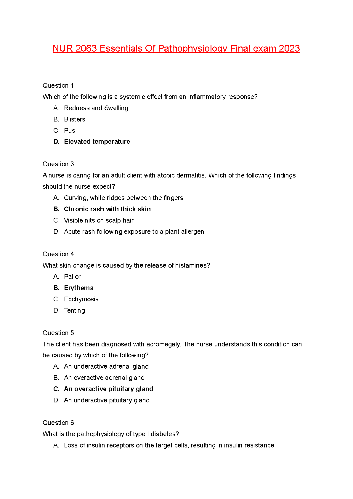 Excel in your NUR 2063 course with the definitive Test Bank for Grossman & Porth's 'Essentials of Pathophysiology: Concepts of Altered Health States', 6th Edition. This essential study tool provides a vast collection of exam-style questions with verified answers, covering key topics like inflammatory response, endocrine systems, cellular biology, and more. Designed to help nursing students grasp complex concepts and prepare effectively for their final exam, this resource is your key to achieving top grades and passing with confidence. Download today for immediate access to the ultimate study companion for Essentials of Pathophysiology.