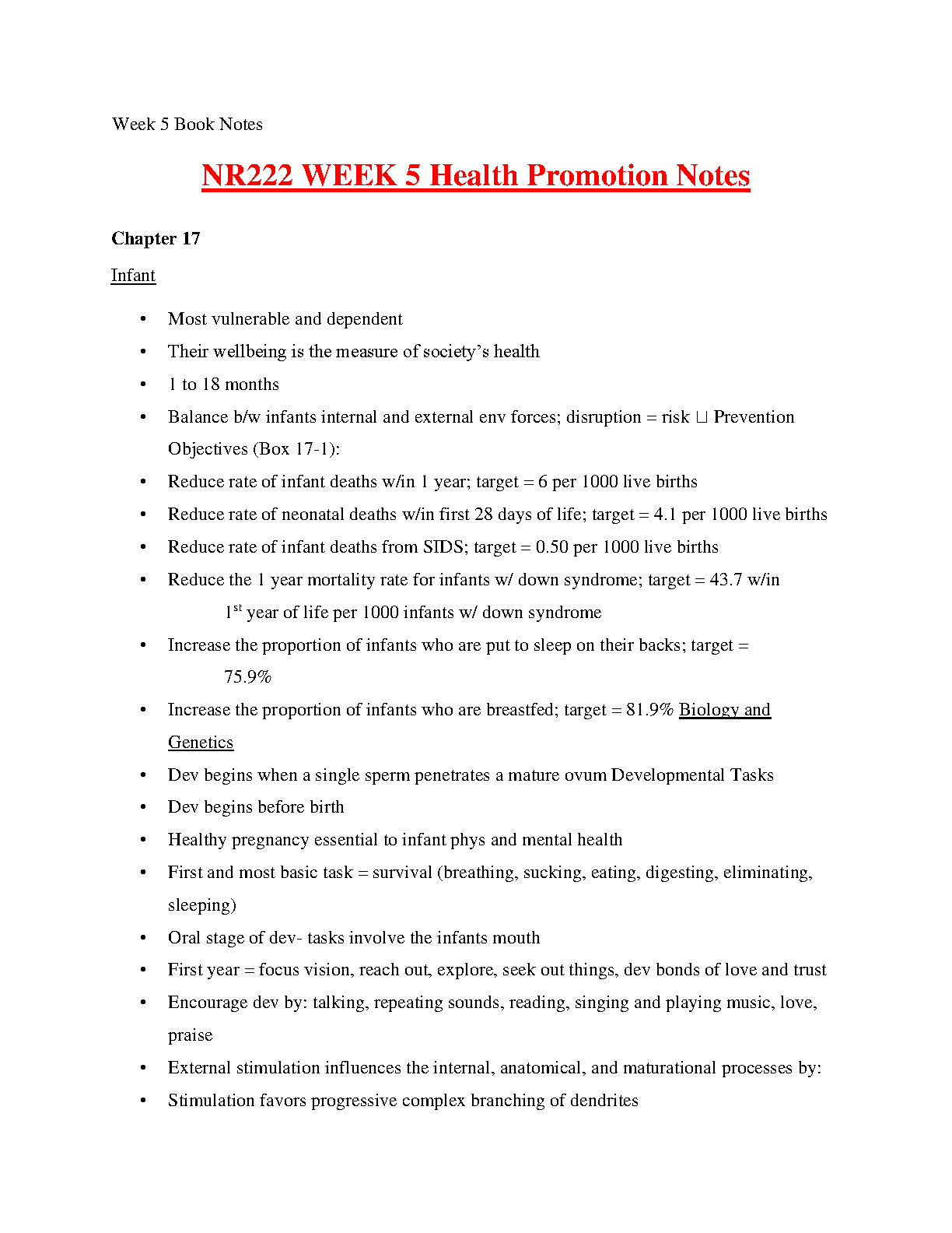 NR222 Week 5 Health Promotion Notes: Chapter 17 Infant | Based on Edelman, Kudzma & Mandle's 10th Edition | Latest 2025/2026 Exam Success Guide