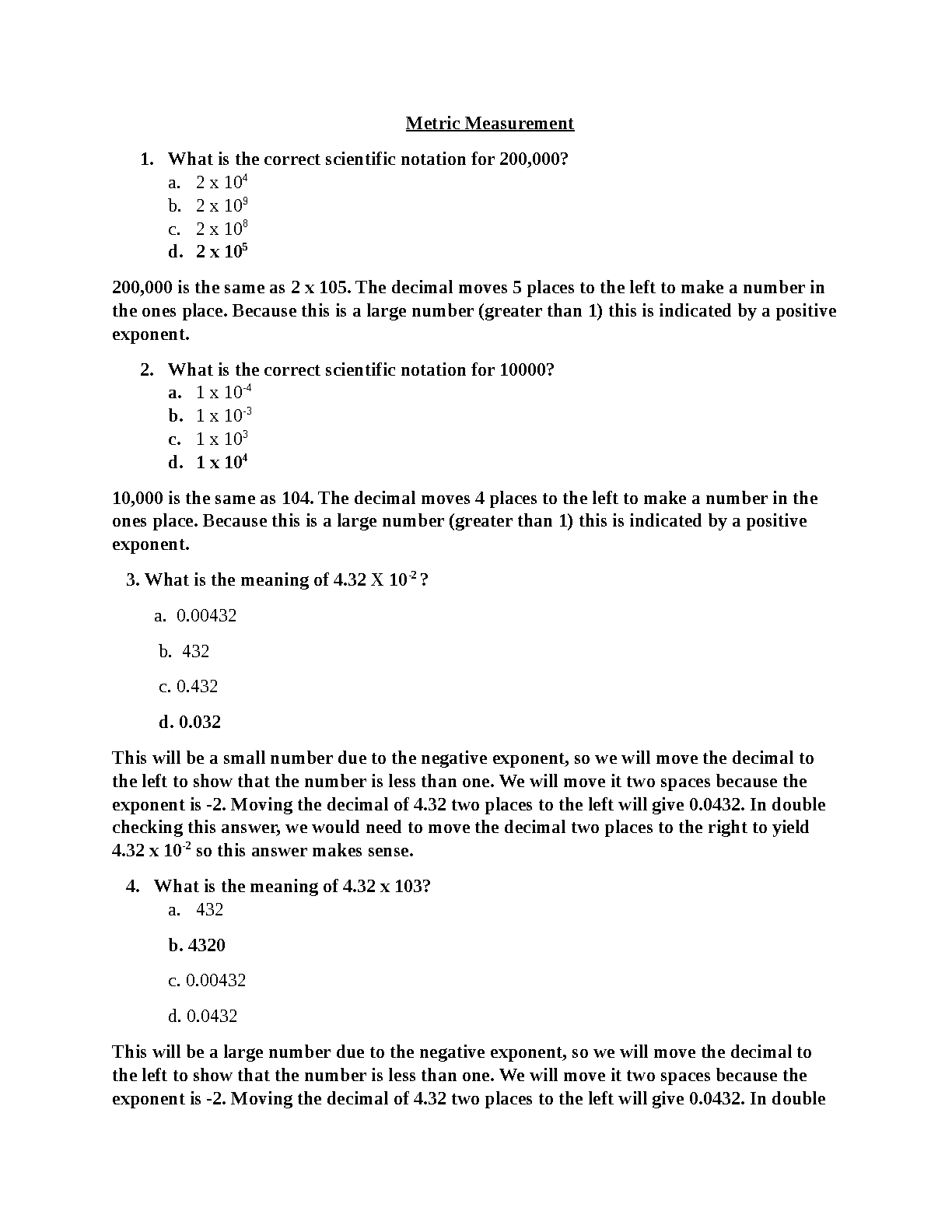 Metric Measurement & Scientific Notation Test Bank: Verified Questions and Answers with Detailed Explanations for Exam Success