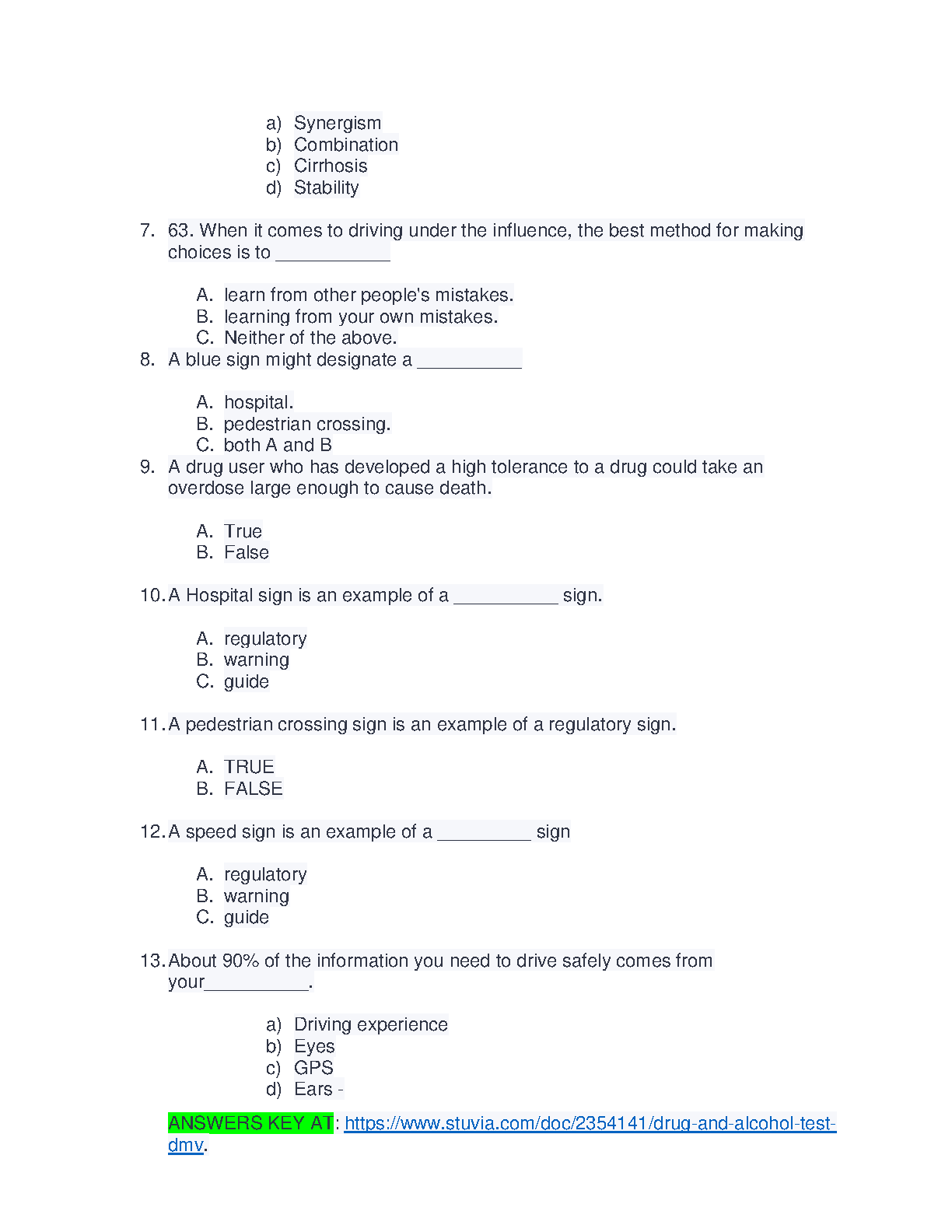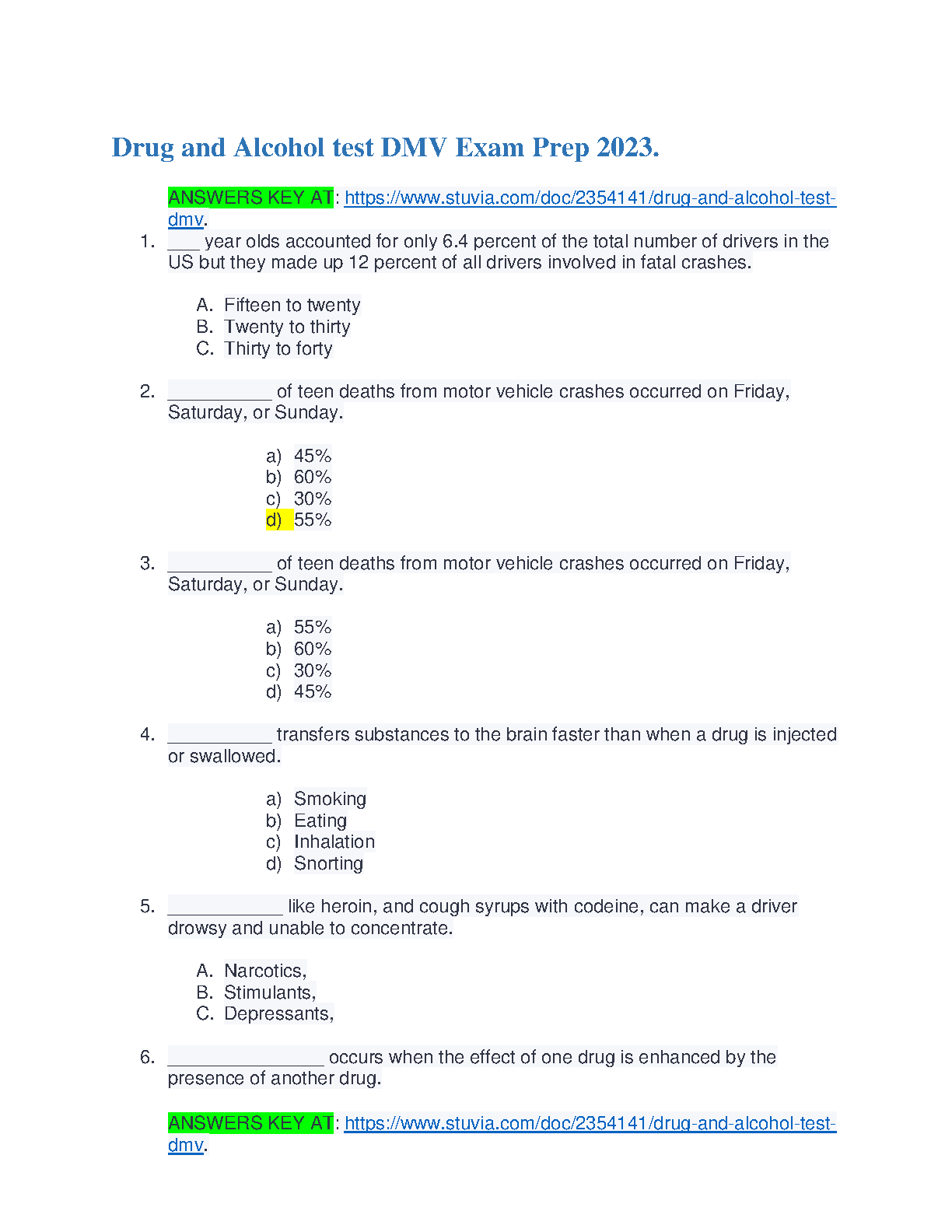 Struggling to prepare for the drug and alcohol section of your DMV exam? This comprehensive test bank is your key to success. Updated for the 2025/2026 academic year, it features a collection of the most frequently asked questions, complete with verified answers. Our expertly crafted resource covers all critical topics, including the effects of narcotics and depressants, statistics on teen driving incidents, and legal consequences. By studying with this guide, you'll build the confidence and knowledge needed to pass your DMV test with flying colors on your very first try. Stop worrying about resits and start your journey to getting your driver's license today!