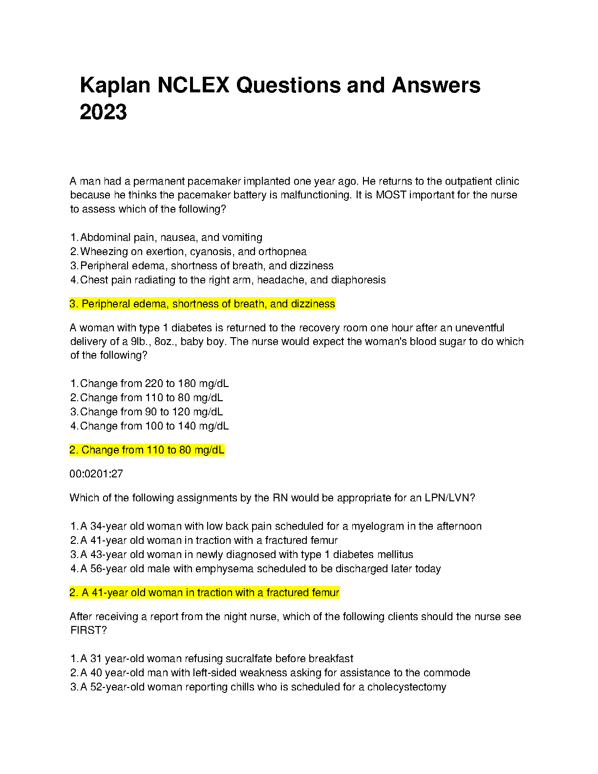 Test Bank for Kaplan NCLEX Questions and Answers, 2023 Edition by Kaplan Nursing