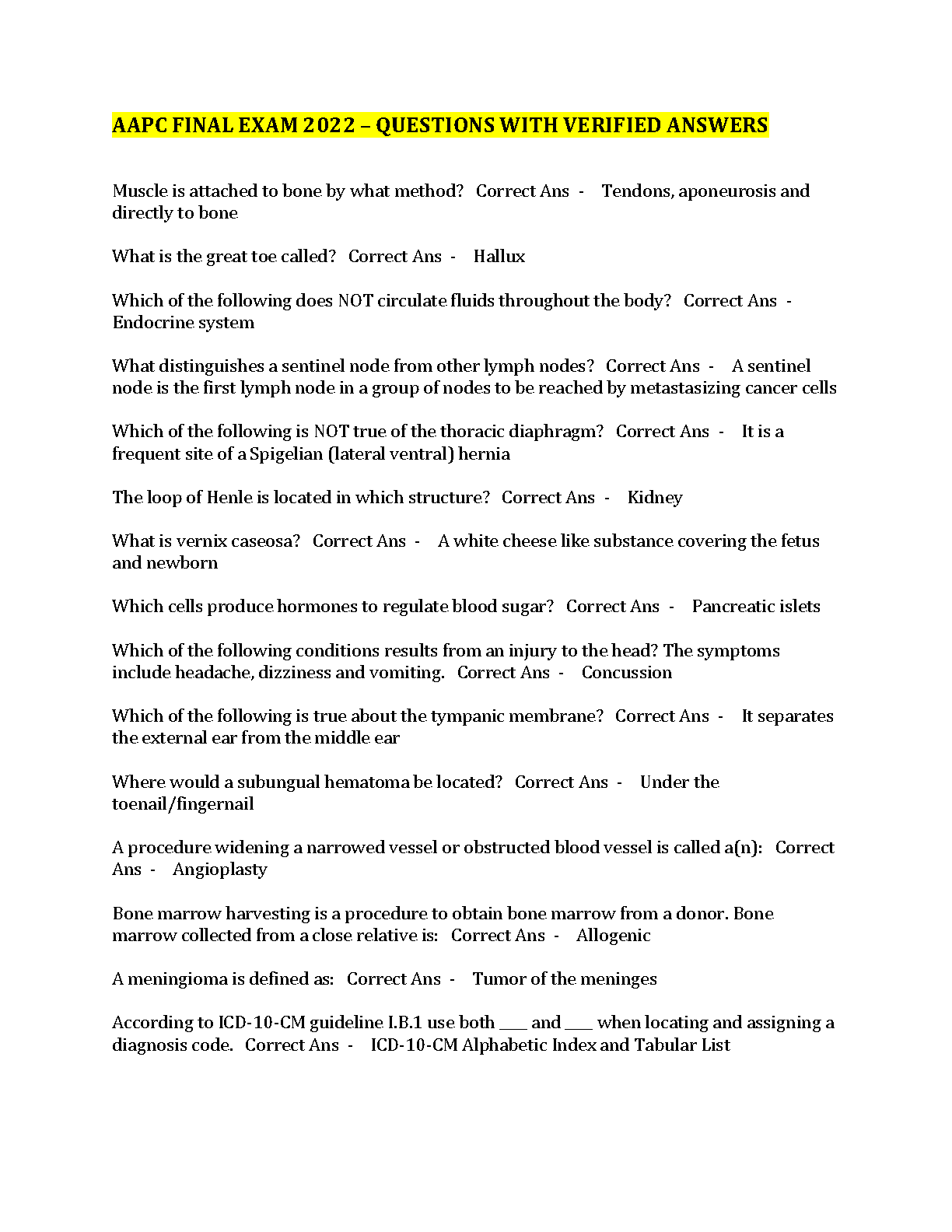 AAPC Final Exam 2022 Test Bank: Complete Questions & Verified Answers